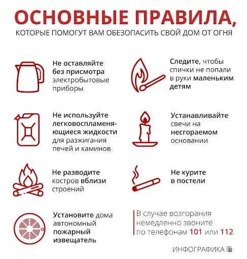 Примеров пожаров из-за неосторожного обращения с огнем очень много. Основные из них это зажженные свечи или спички в домовладении, непотушенный окурок выброшенный из окна, неправильное использование пиротехнических средств, разжигание костров вблизи строений, которые остались без присмотра. Также в Республике Беларусь предусмотрена административная ответственность за нарушение законодательства о пожарной безопасности (статья 23.56 КоАП Республики Беларусь).