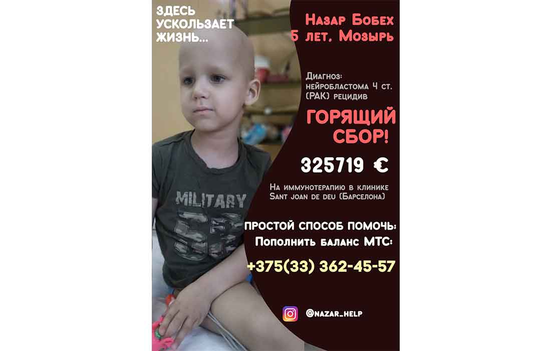 Помогите спасти нашего сыночка! Здравствуйте. С огромной просьбой о помощи к Вам обращается семья Бобех из города Мозырь, Гомельской области. Нашему сыну, Назару, в