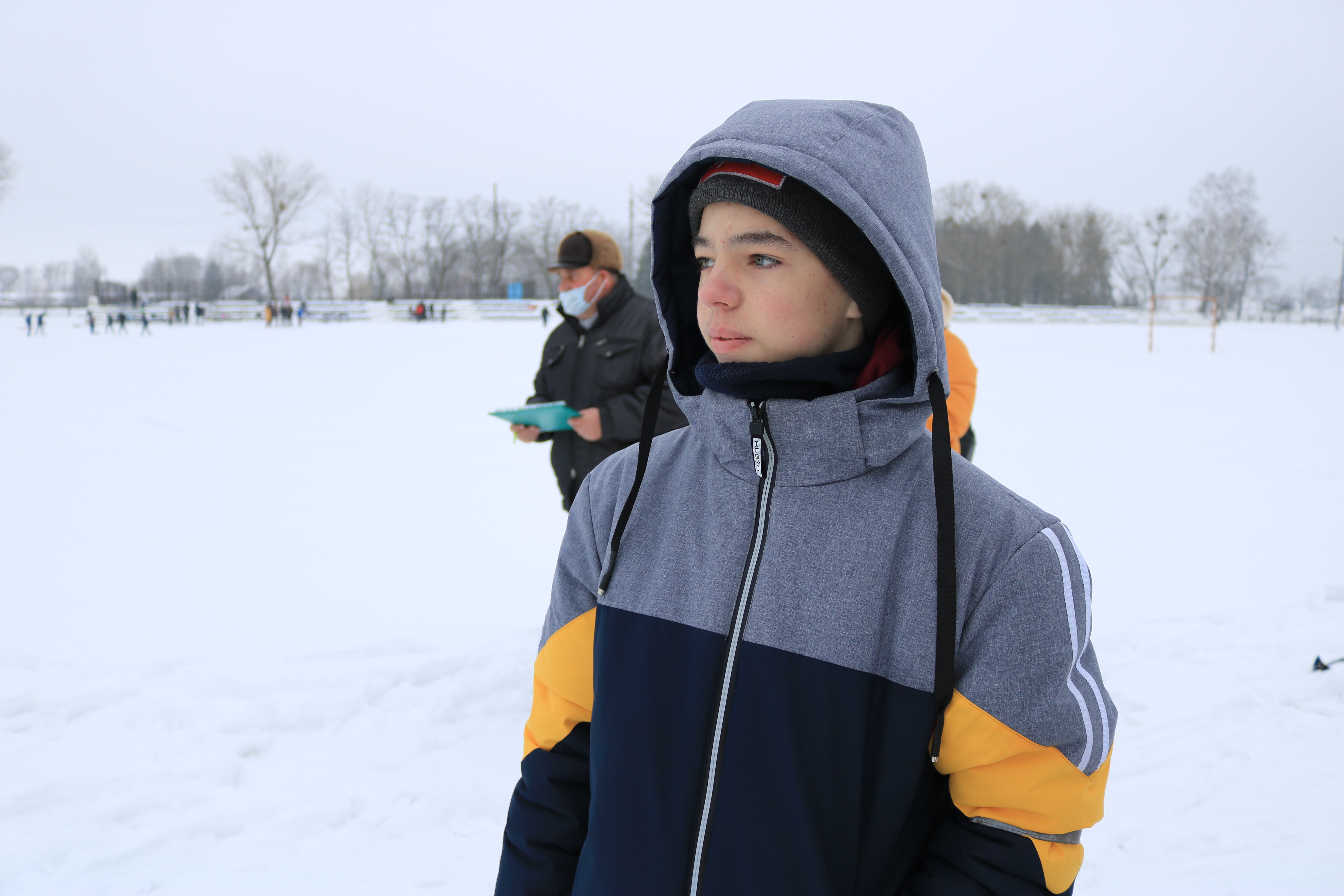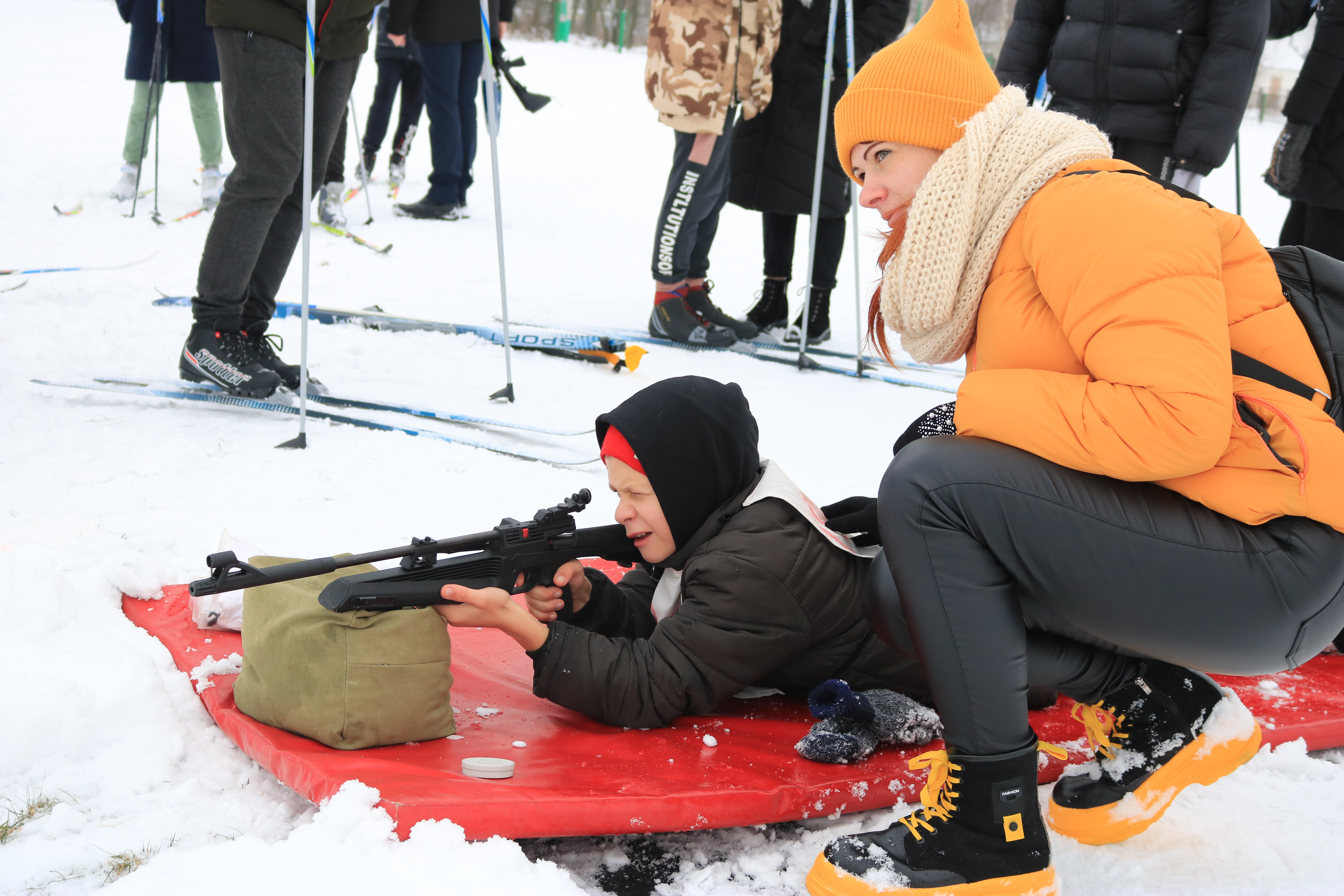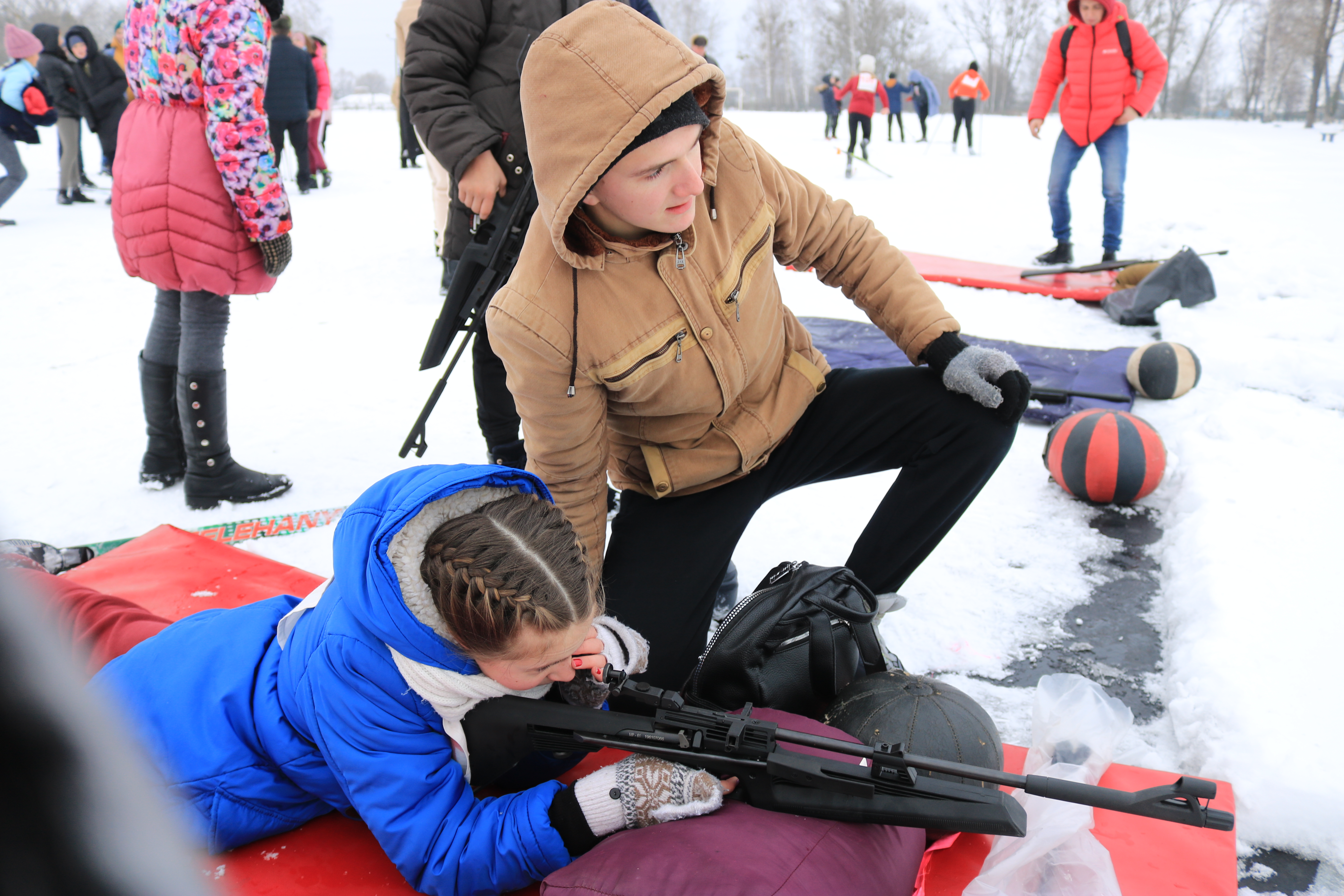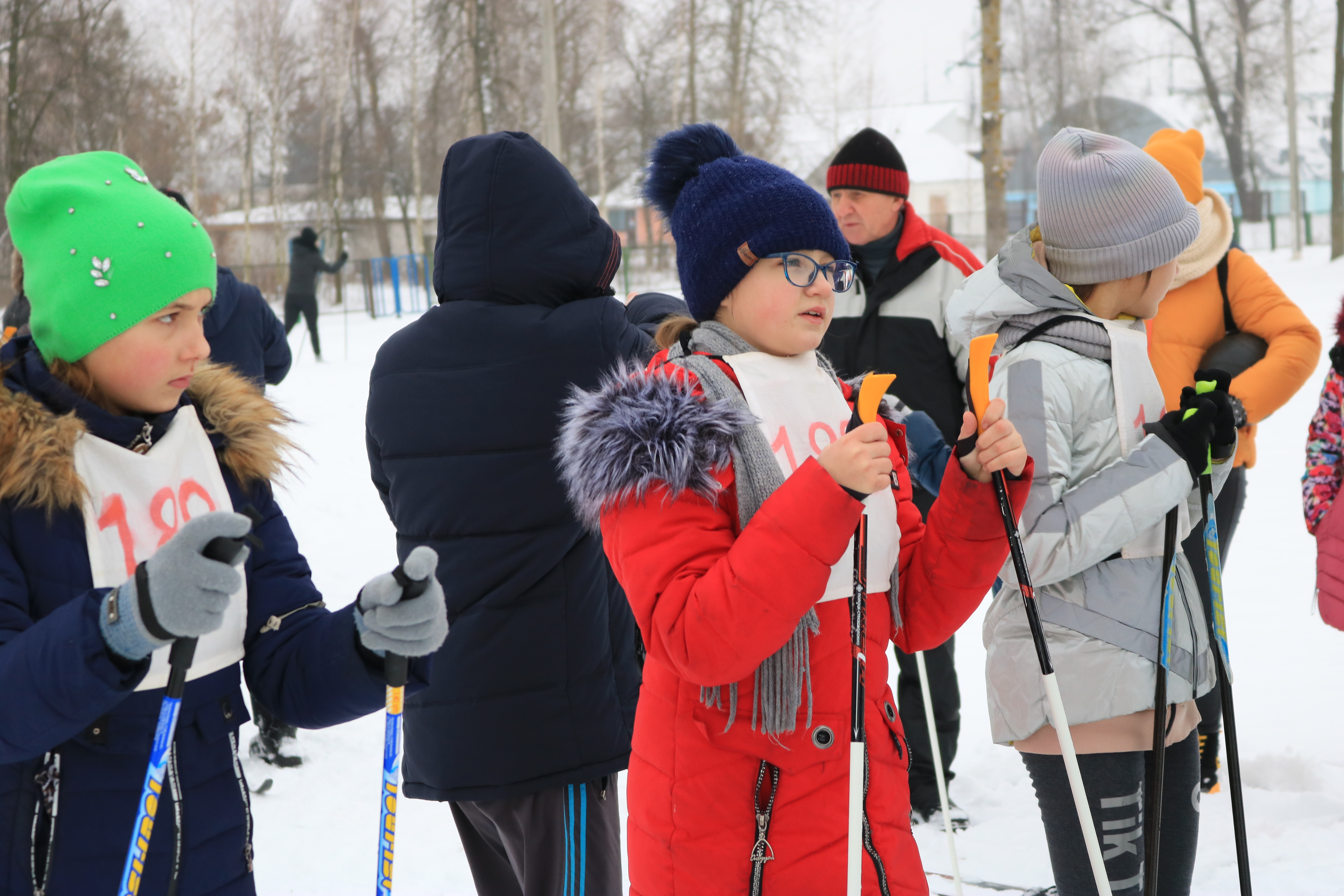 Школьники с красующимися большими номерами на груди с нетерпением ожидали начала соревнования по лыжным гонкам со стрельбой из пневматической винтовки из положения лёжа. Дистанция у младших — один круг протяжённостью 500 м, остальным нужно проехать таких два.