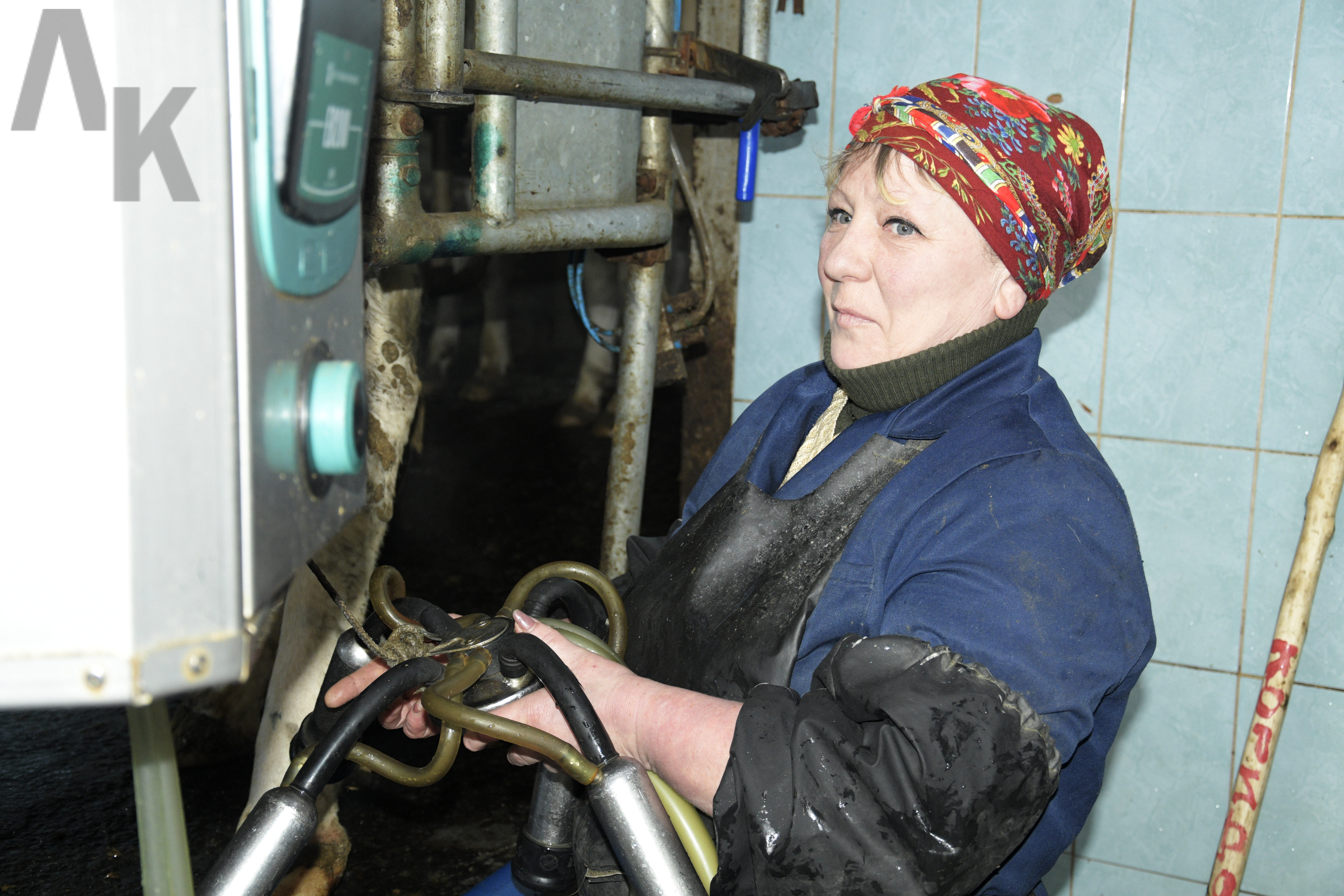 Лариса Козловская (на снимке) трудится здесь с момента открытия комплекса. Ещё в детстве она научилась доить коров, ухаживать за ними, потому что росла в деревенской семье, где держали большое хозяйство. Можно сказать, что именно с тех времен берет свое начало главный её талант: работать умело, добросовестно и по-хозяйски. Лариса Николаевна отдаёт все силы, заботясь о вверенной группе коров. С раннего утра она уже в сарае, готовит к дойке подопечных. Её обязанности имеют определенную специфику, и женщина подходит всегда к ним ответственно, с полной отдачей.