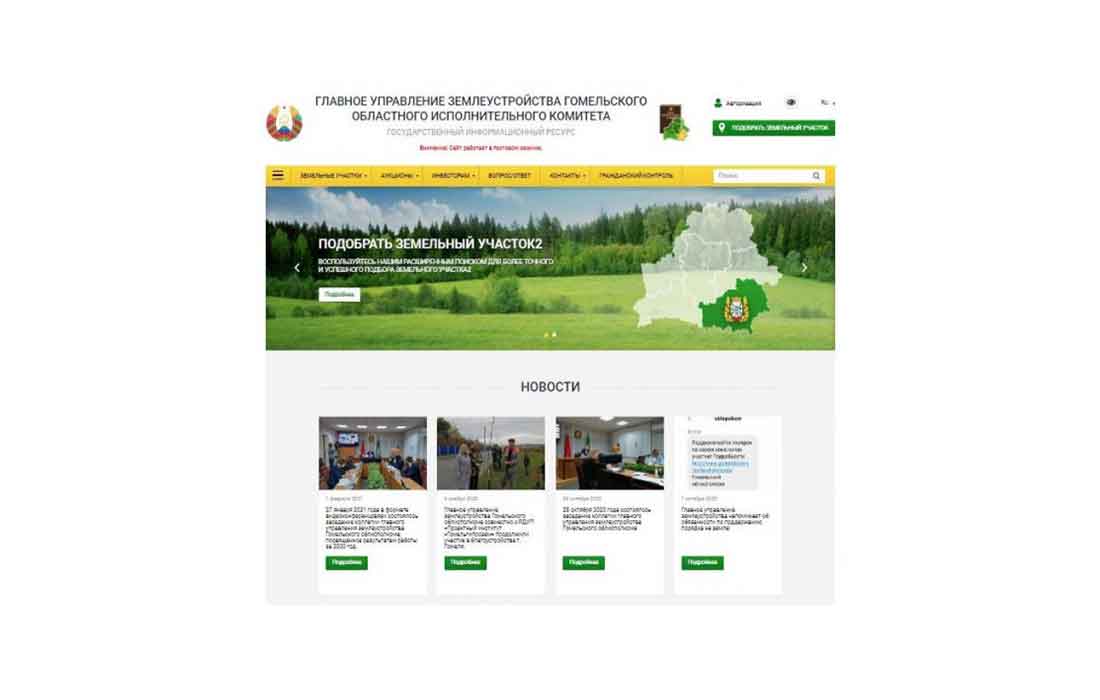 Один из наиболее прогрессивных интернет-сайтов в сфере землеустройства — сайт главного управления землеустройства Гомельского облисполкома (http://gomeloblzem.by). По своему содержанию это самодостаточный набор инструментов и