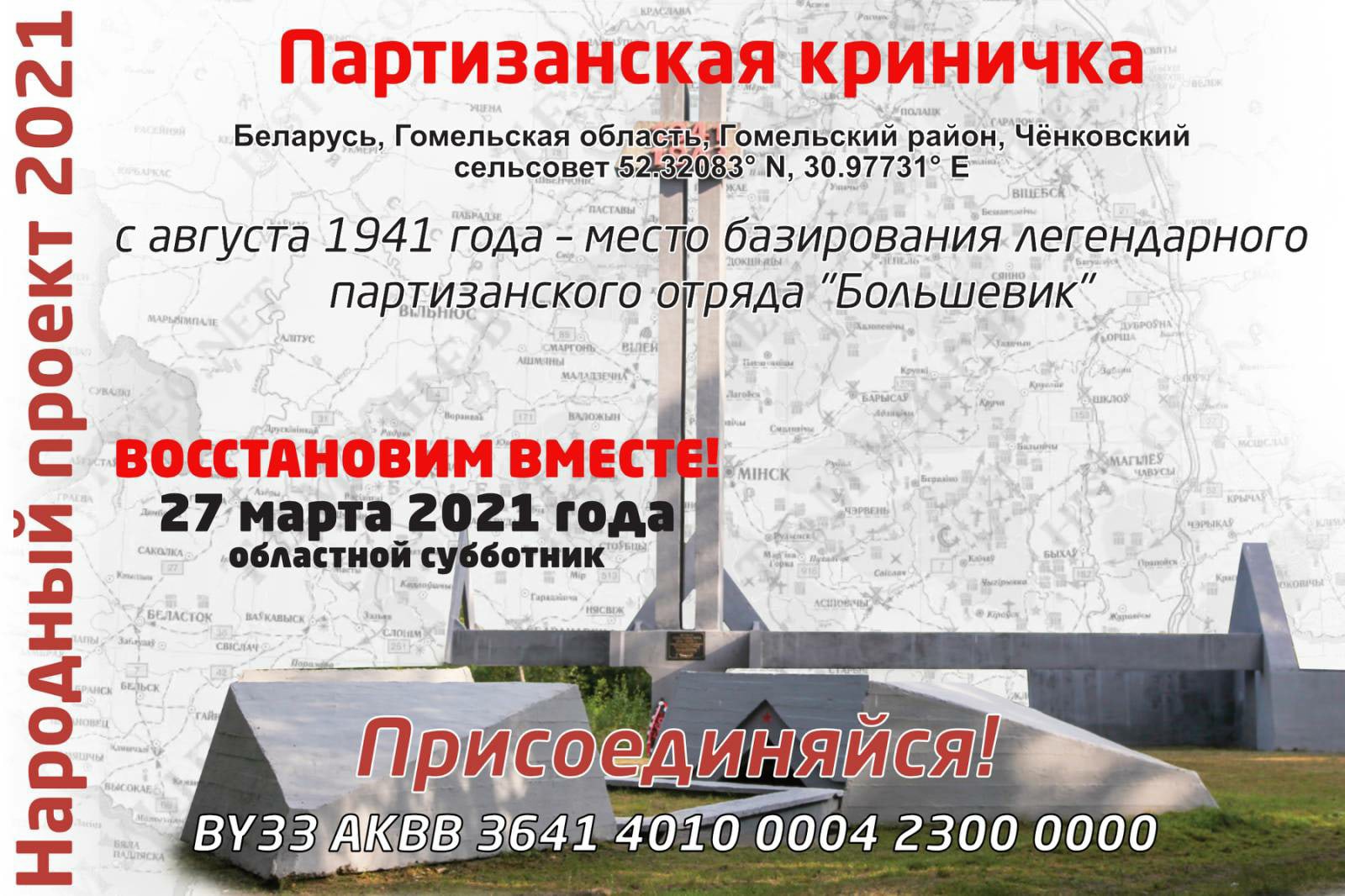 Инфографика Общество 11.03.202111.03.2021 Областной субботник пройдет 27 марта Опубликовал: Лоевский край 0 Комментариев 27 марта на Гомельщине пройдёт областной субботник. Средства перечислят на реконструкцию «Партизанской кринички», где в годы Великой Отечественной войны дислоцировался легендарный партизанский отряд «Большевик».