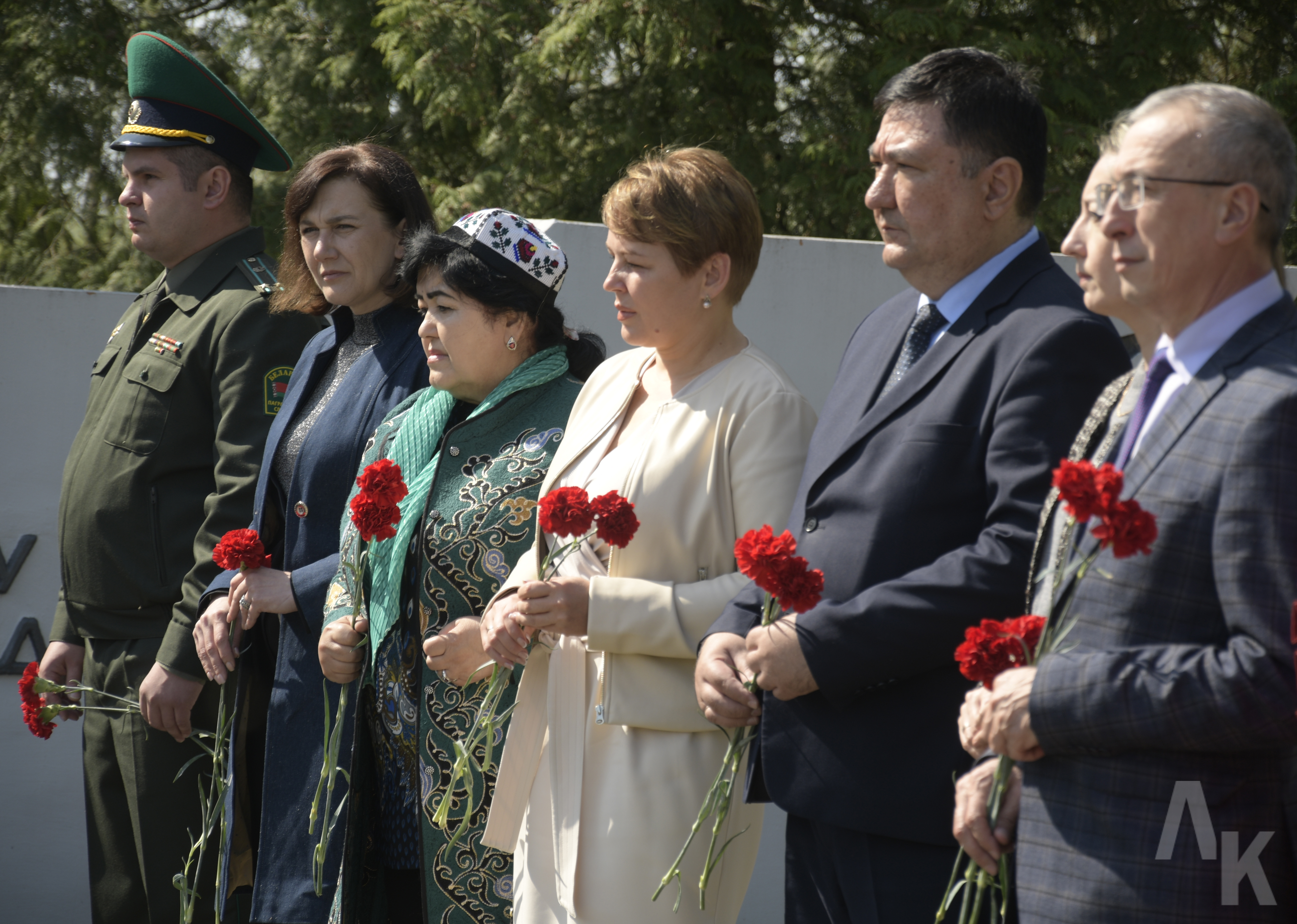 Почтить память своих земляков приехали Поверенный в делах Республики Узбекистан в Беларуси Юлдашев Гайрат Шавкатович и помощник Посла Алимов Кабул Батирович (с супругами).
