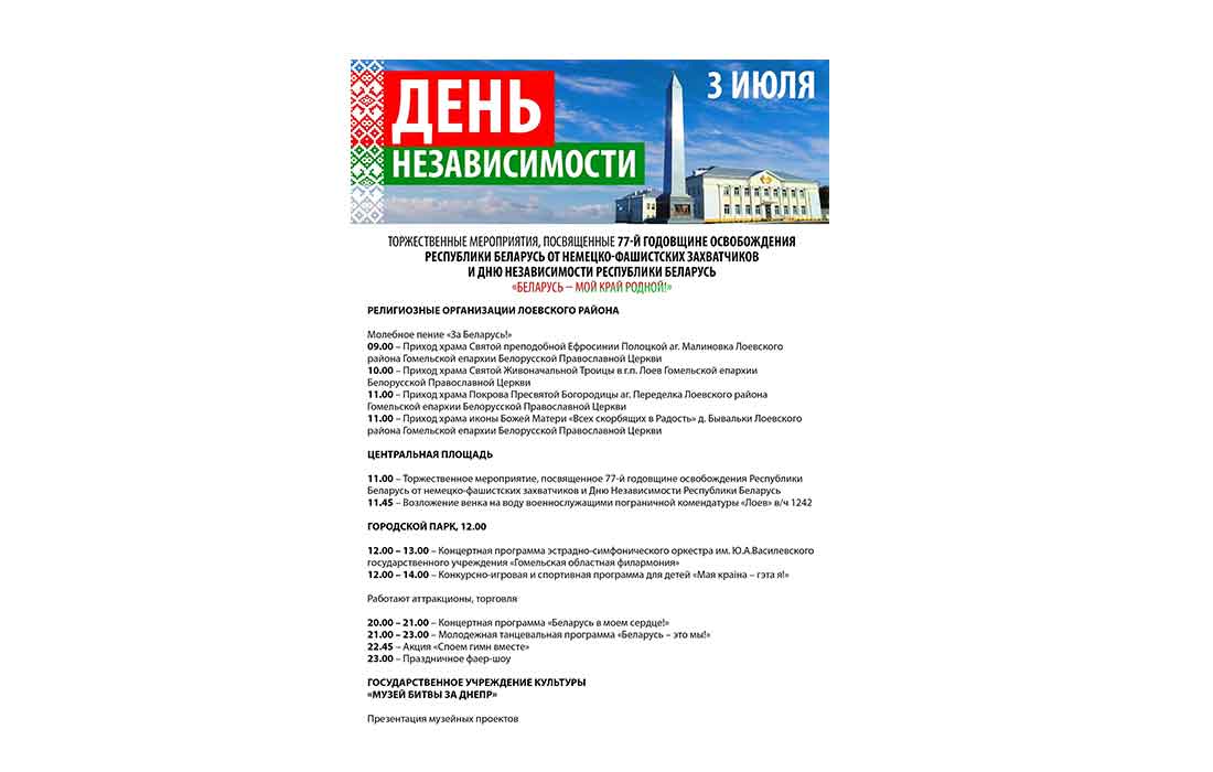 77 гадоў таму назад беларуская зямля была вызвалена ад нямецка-фашысцкіх захопнікаў, а 30 год таму назад Беларусь набыла суверэнітэт. Гэтыя дзве даты зліліся ў адну