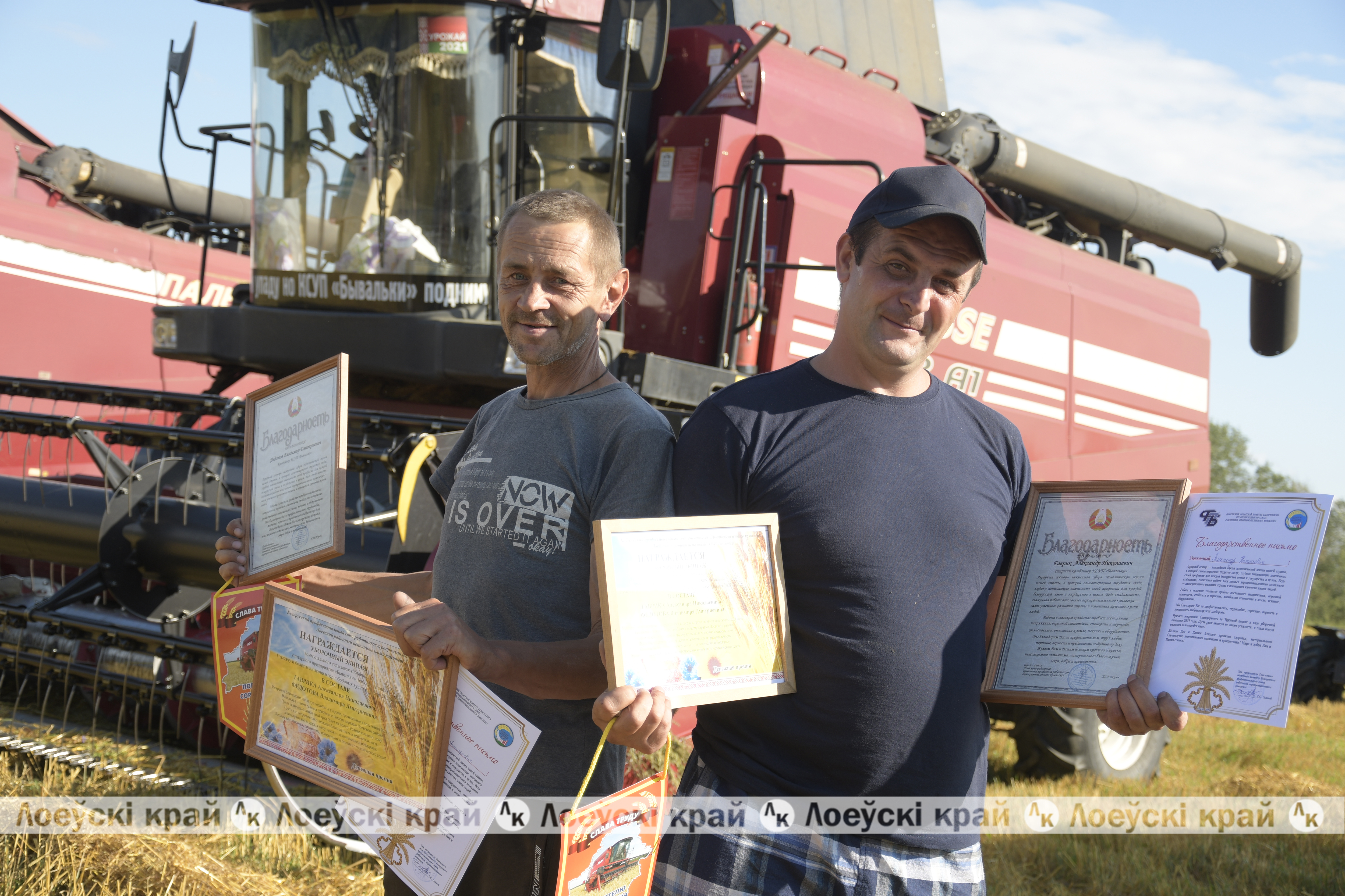 Поздравить героев хлебной нивы приехали председатель районного исполнительного комитета Вероника Байкова, председатель Гомельского областного комитета Белорусского профсоюза работников местной промышленности и коммунально-бытовых предприятий Юрий Корж, представители районного объединения профсоюзов, Белорусского профсоюза работников АПК, РО РОО «Белая Русь» и сельхозпредприятий