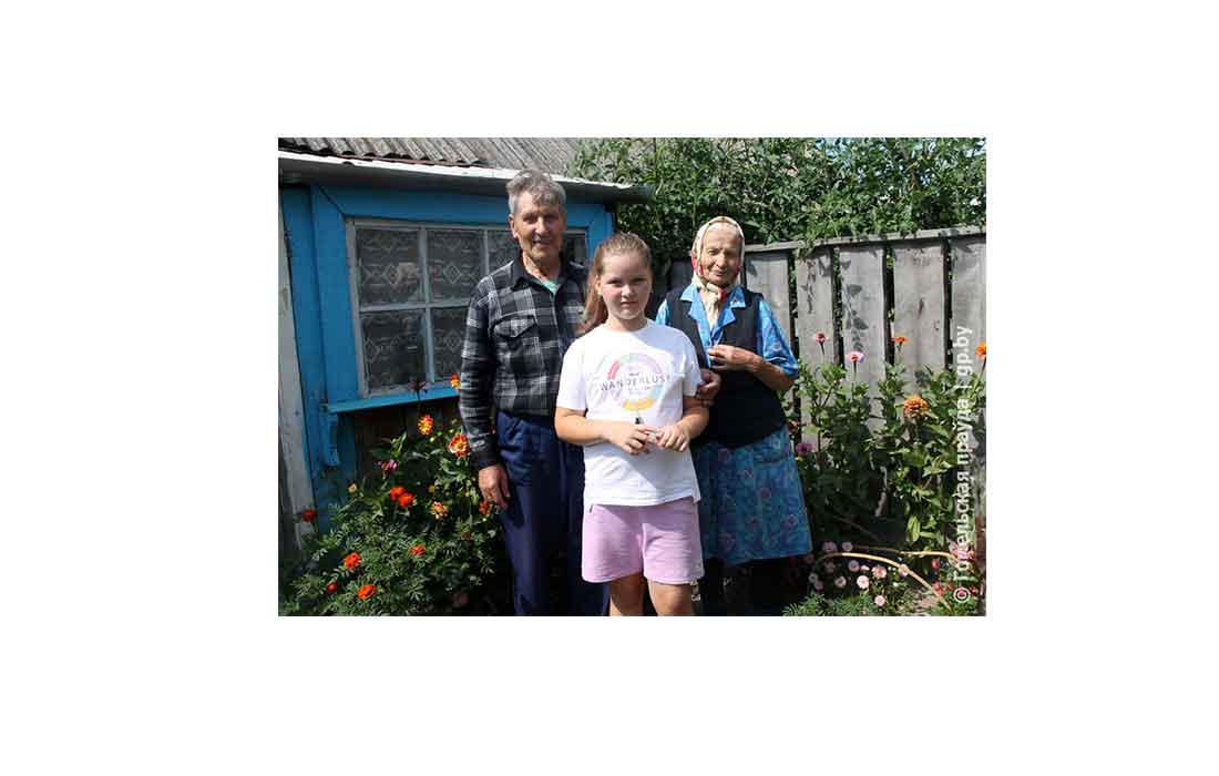 Пазнаёміліся. Аказваецца, гамяльчанка Алена Гапейкіна, ваеннаслужачая, пасля выхаду на пенсію пераехала з мужам у дом яго бацькоў. Сваю кватэру, як і многія цяпер гараджане, пакінулі дзецям. І сапраўды, лепш самім прымаць іх як гасцей ды і да іх наведвацца зрэдчас! Такая філасофія многіх прадстаўнікоў старэйшага пакалення. Унукам жа раздолле тут, на прыродзе! Меншы Дзімка падзяліўся, што хутка адсвяткуе свой дзень нараджэння. Прапанавала фота з такой нагоды. А вось дзядулю хлопчыка не давялося сфатаграфаваць: Сяргей Анатольевіч быў на працы ў Пярэдзелцы, ён станочнік-дрэваапрацоўшчык.
