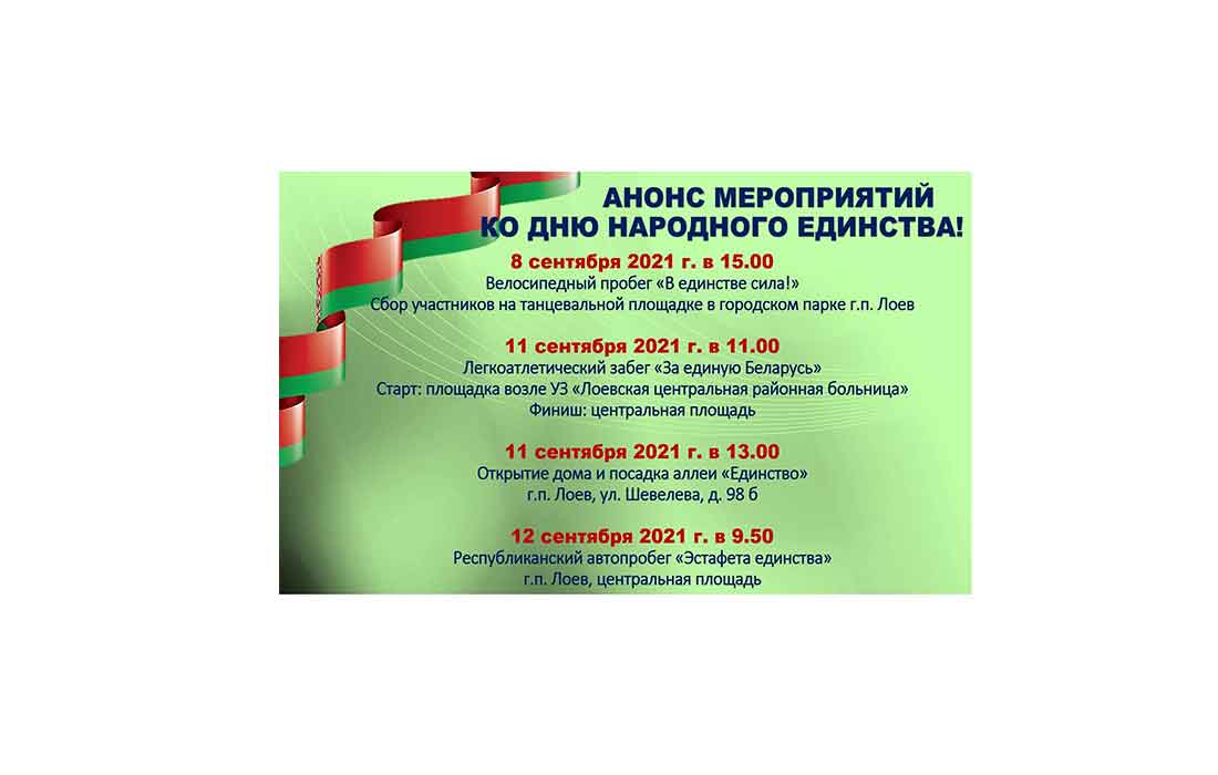 Анонс мероприятий на Лоевщине ко Дню народного единства