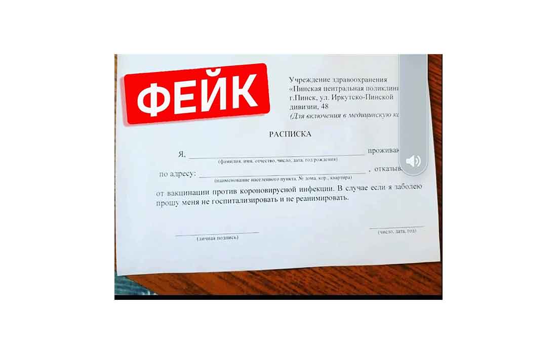 В интернете распространяется фотография расписки, что человек отказывается от вакцинации, и если он заболеет, реанимировать его не нужно. По информации телеграм-канала “Желтые сливы”, это очередной фейк. Документ написан с грамматическими ошибками, инфекцию назвали “коронОвирусной”, про запятые не слышали