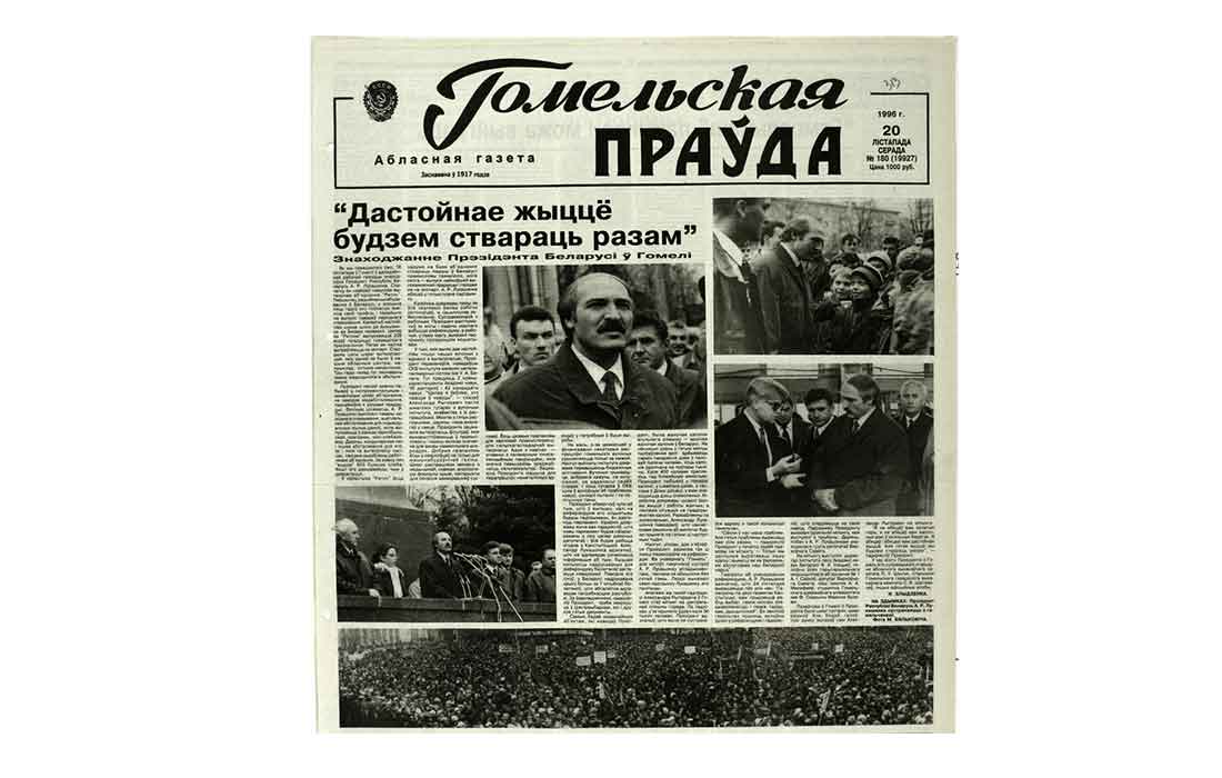 Публикация в “Гомельскай праўдзе” о визите Александра Лукашенко в областной центр накануне референдума – 18 ноября 1996 года. Поддержку Президенту гомельчане выразили митингом: на центральную площадь пришли около 50 тысяч человек