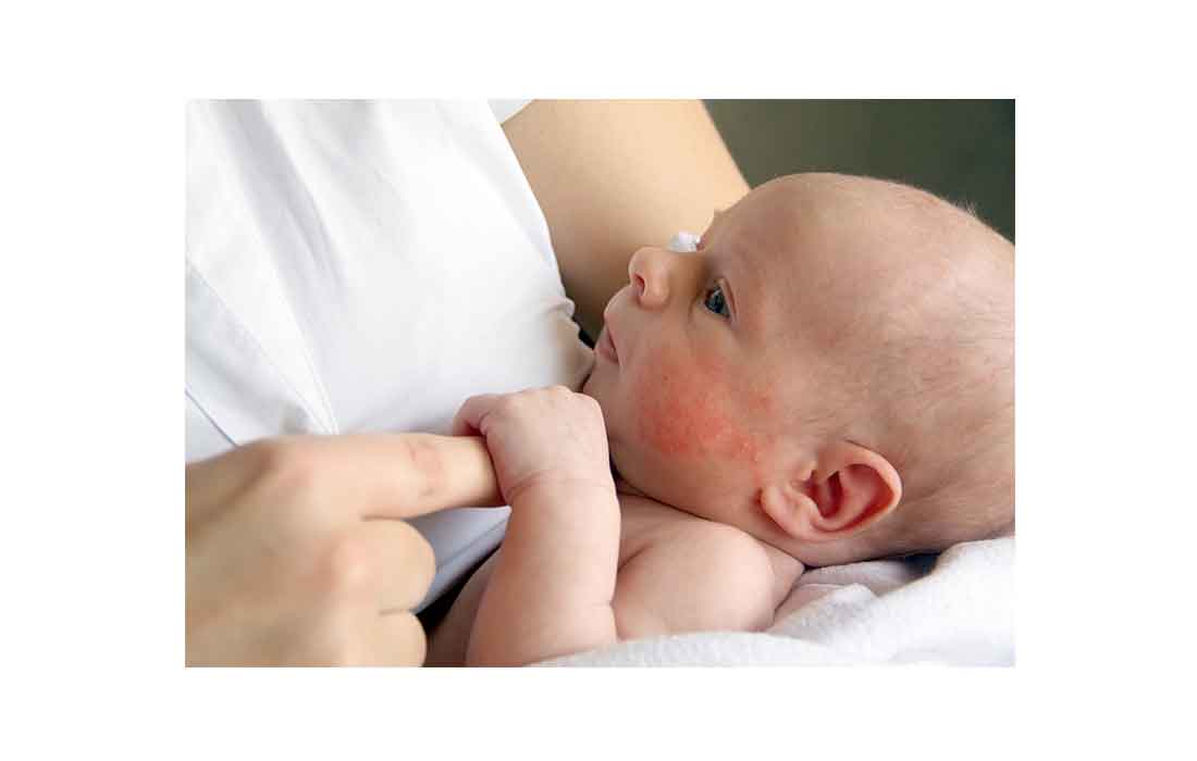 Младенческий атопический дерматит развивается с первых месяцев жизни: у кого-то в полгода, у кого-то раньше. Локализуется на лице (чаще всего на щеках), шее, конечностях, туловище, в местах разгибания локтей и коленей. Высыпания в раннем возрасте ярко-розовые. Для них характерны т.н. очаги мокнутия, потому что везикулы (воспалительные элементы) лопаются, и выделяется секрет. В период обострения пораженные участки красные, отечные и очень сильно зудят.