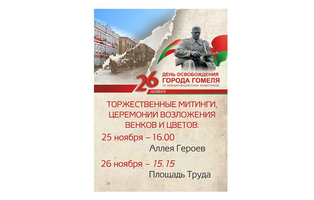Гомельщина вещает! 20.11.202122.11.2021 26 ноября – День освобождения Гомеля от немецко-фашистских захватчиков. Афиша мероприятий Опубликовал: Лоевский край 0 Комментариев