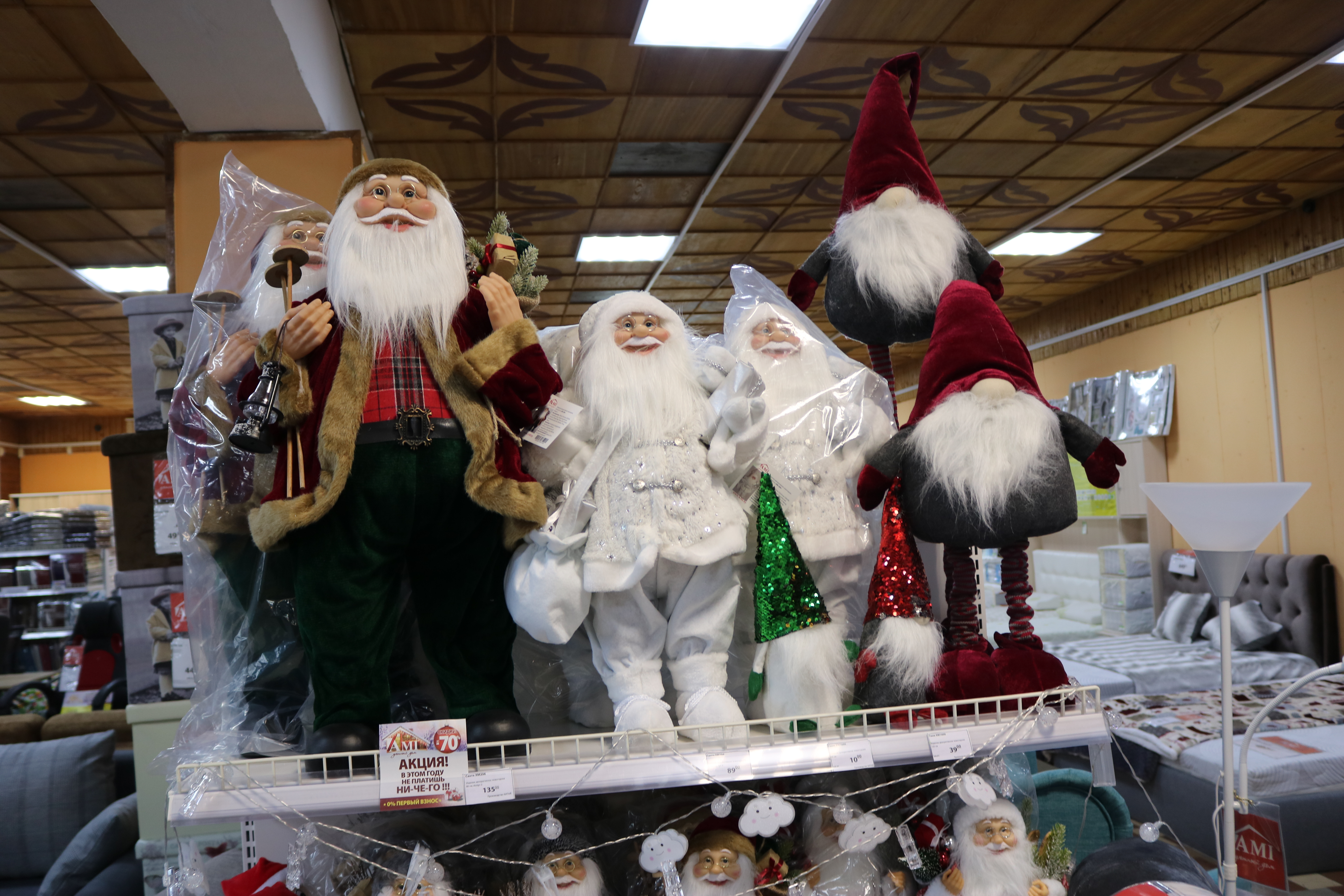 В магазинах можно отыскать оригинальные игрушки: румяных Дедов Морозов, милых Снеговиков, забавных кукол, причудливых гномов, рождественские венки, носки и новогодние колпаки («Ами МЕБЕЛЬ»). Продаются как одиночные экземпляры, так и целые наборы игрушек в упаковках.