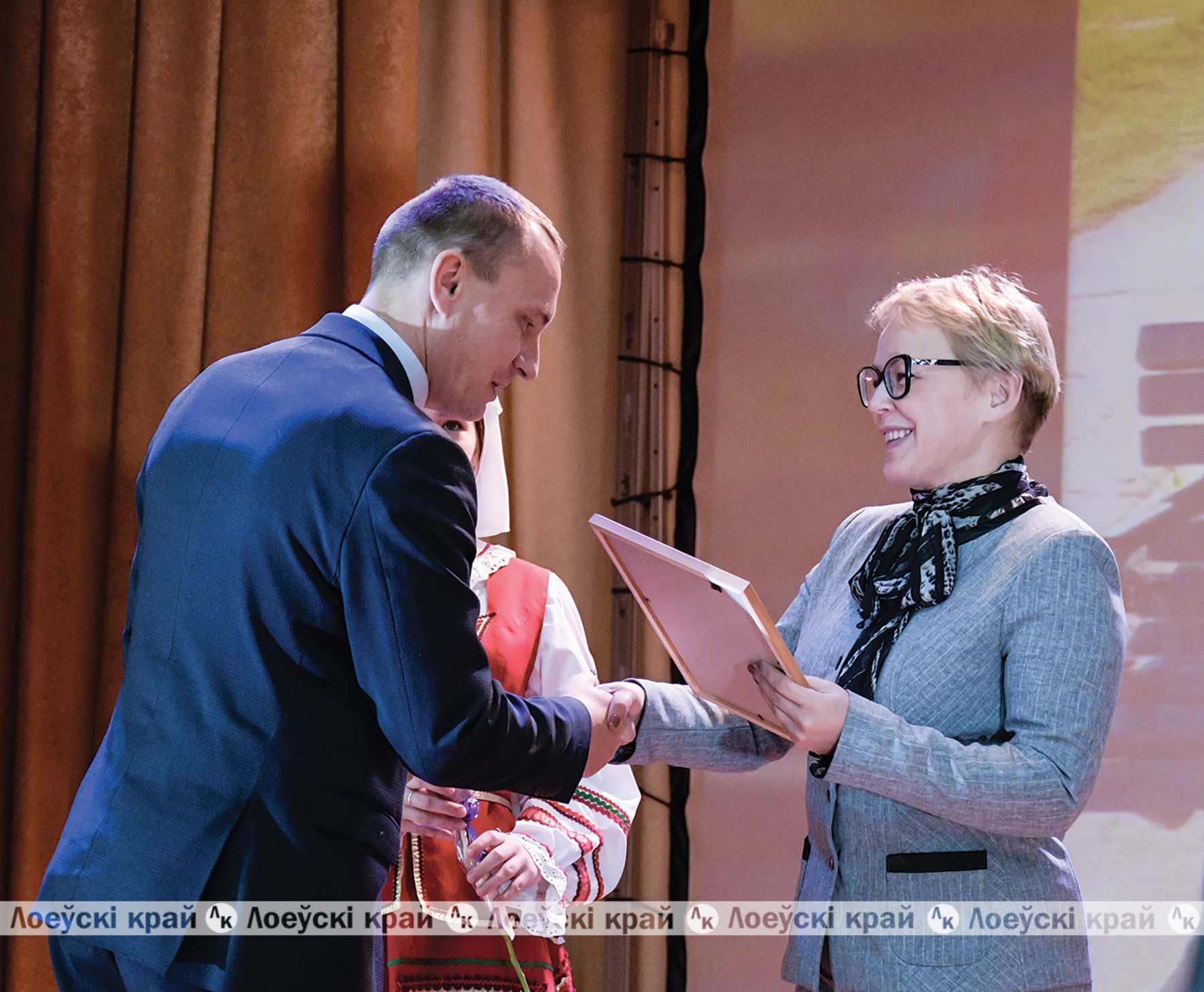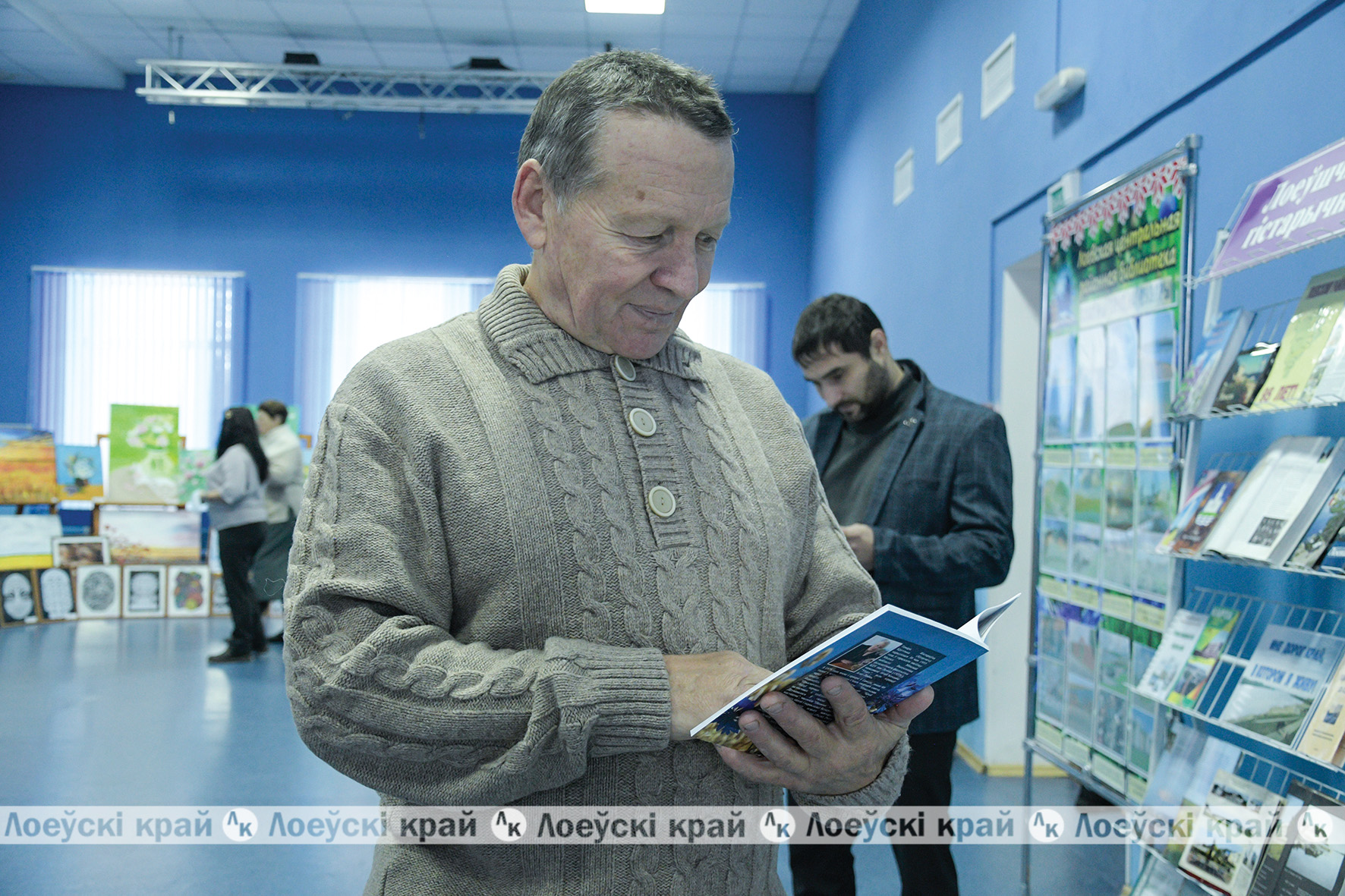 В фойе ГЦК царила атмосфера торжества. Здесь была организована выставка творческих работ педагогов и учащихся педколледжа. Чего там только не было: на картинах взору открывались пейзажи родного края, нежные топиарии из бумаги, бисера, ткани и других материалов, поражающие своей красотой и разнообразием. В каждой работе — старание, любовь и вдохновение. Центральная районная библиотека представила стендовую экспозицию «Лiтаратурны гонар Лоеўшчыны», где разместились произведения писателей-земляков. Музей битвы за Днепр подготовил фотовыставку «История, написанная на воде». Здесь же разместилась фотолетопись знакомых и незнакомых уголков Лоевщины. Все это, несомненно, притягивало взгляды посетителей.