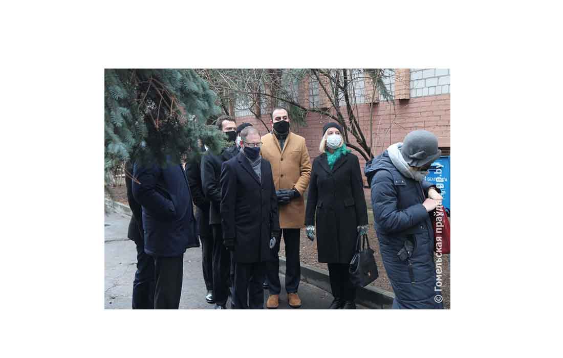 Сегодня возле здания Гомельского следственного изолятора собрались дипломаты из Евросоюза, Великобритании и США. Они дожидались оглашения приговора по делу Тихановского и его приближенных. Заграничные
