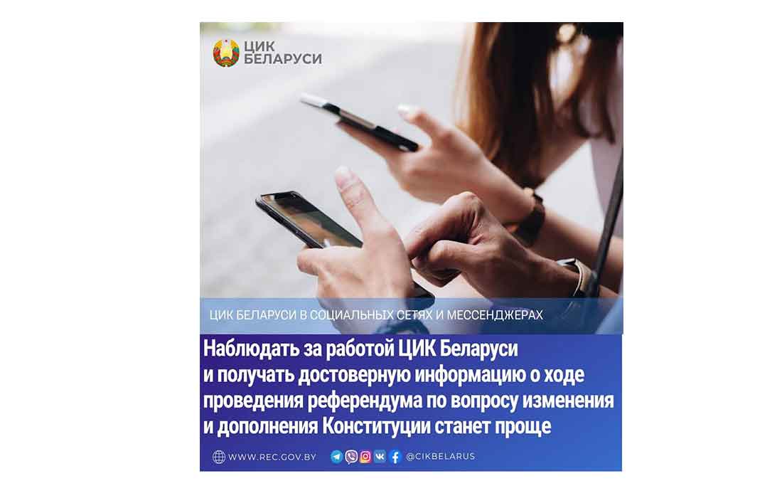 Центральная комиссия Республики Беларусь по выборам и проведению Республиканских референдумов запустила в работу официальные каналы в социальных сетях и мессенджерах: Vkontakte, Instagram, Facebook, Telegram, Viber.