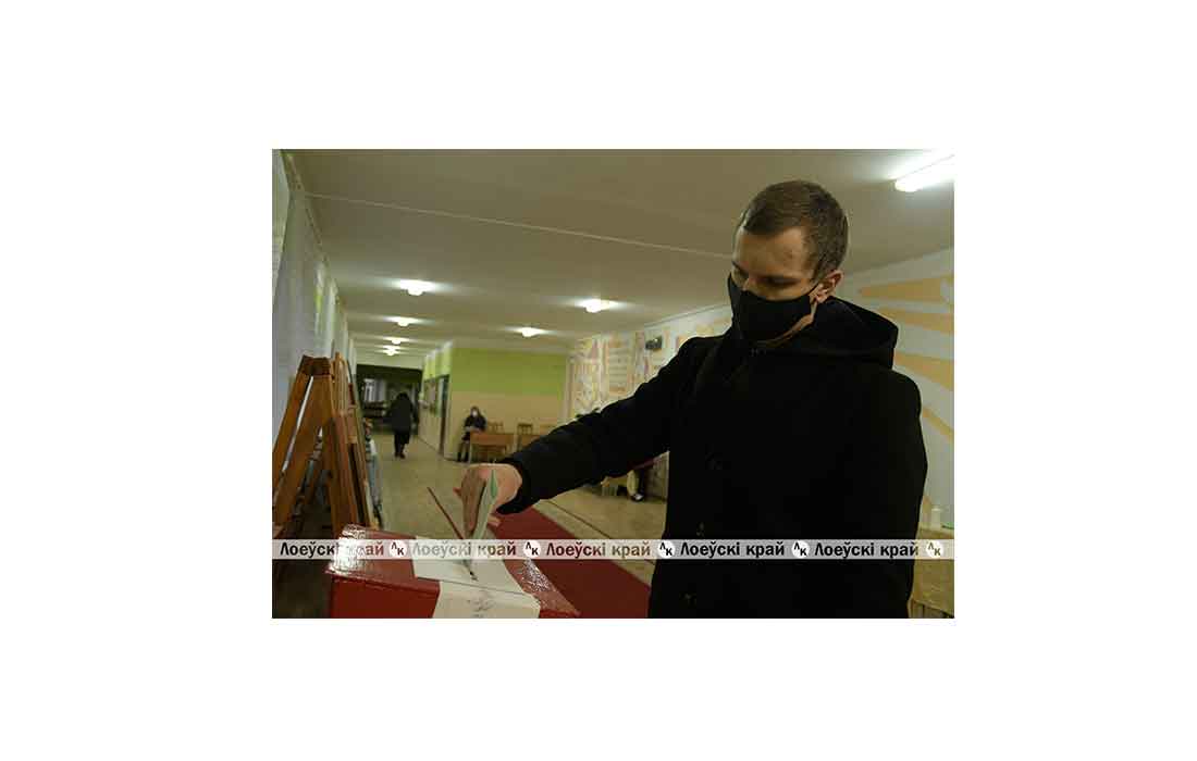 З пачуццем патрыятызму апусціў свой бюлетэнь ў урну малады жыхар Лоева Аляксей Філон.