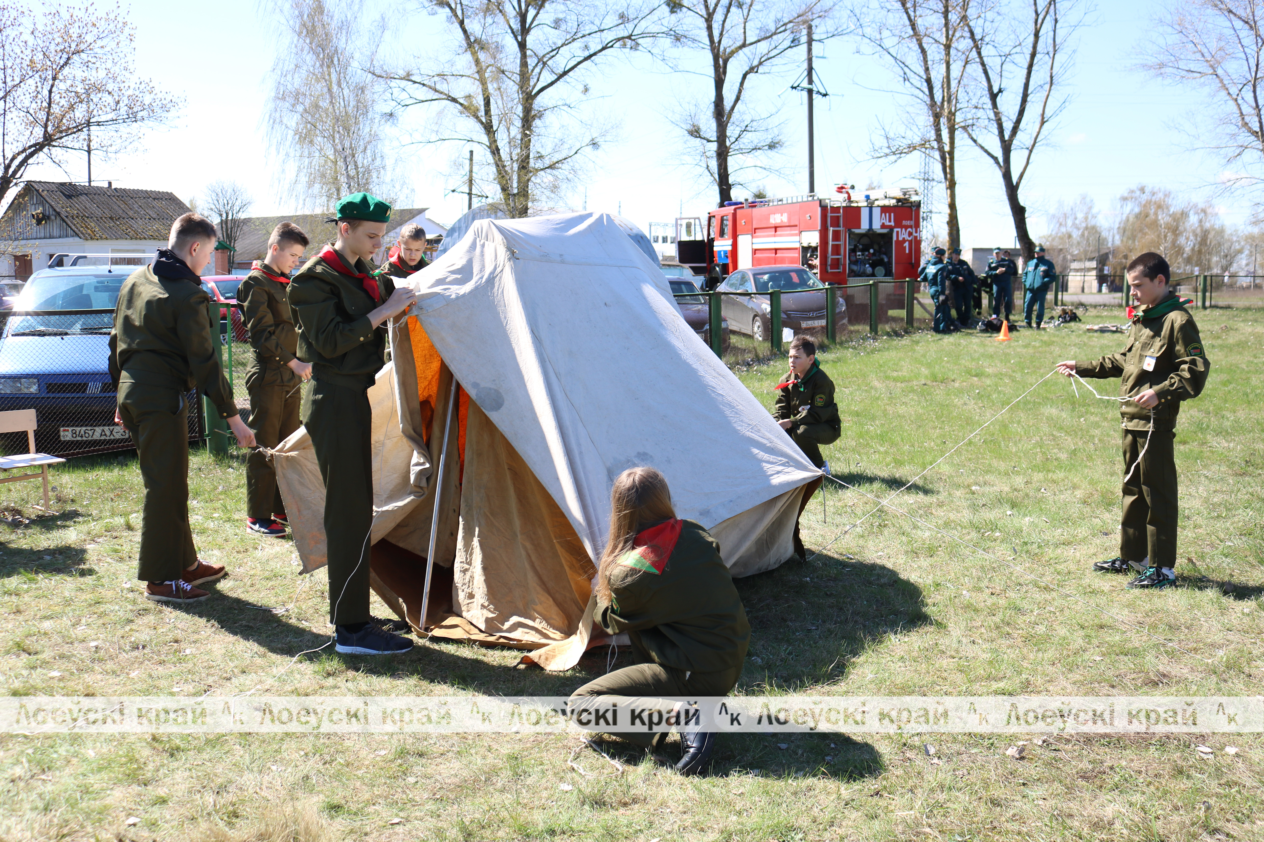 Выправку, чёткость шага, слаженность голосов показал смотр строя и песни. Отлично выступили ребята на этапе разборки-сборки автомата Калашникова. Интересно было наблюдать, как мальчишки и девчонки демонстрировали свои умения в разжигании костра, ориентировании по карте, отвечали на вопросы из страниц истории, устанавливали палатку. А по инициативе сотрудников Лоевского РОЧС ребятам на скорость надо было развернуть пожарный рукав.