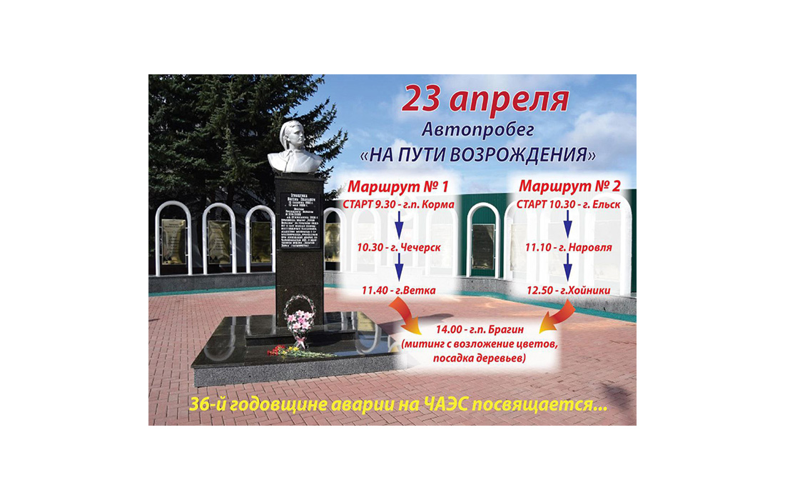23 апреля состоится автопробег «НА ПУТИ ВОЗРОЖДЕНИЯ»⚡, посвященный 36-й годовщине аварии на Чернобыльской АЭС