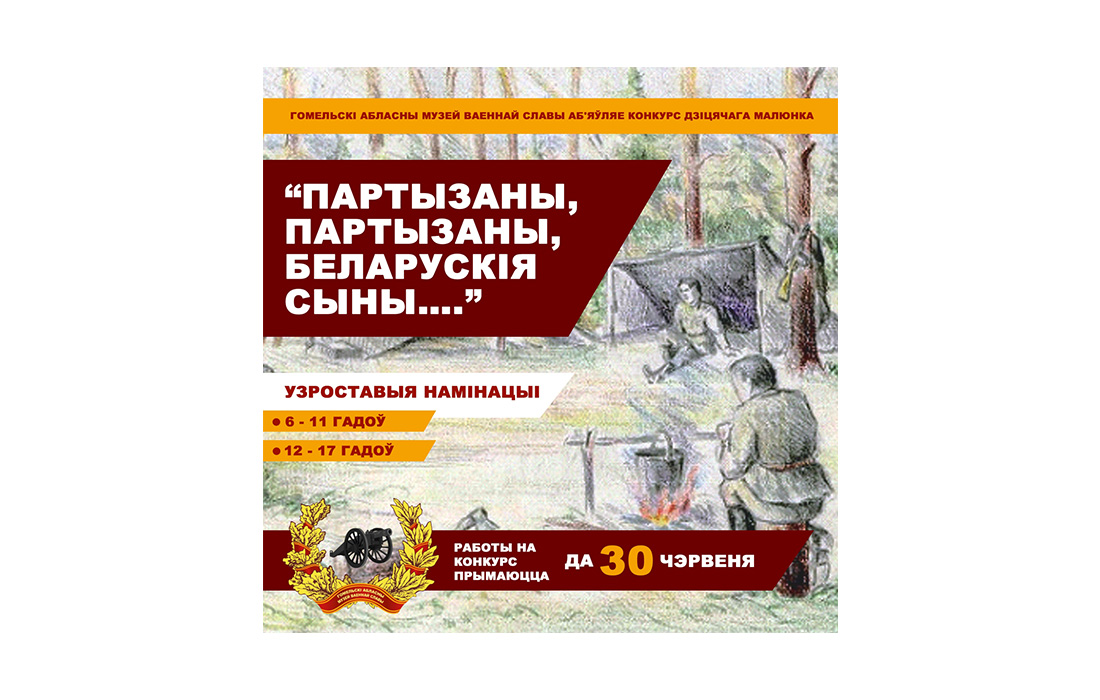 Гомельскі абласны музей ваеннай славы аб’яўляе конкурс дзіцячага малюнка «Партызаны, партызаны, беларускія сыны….”