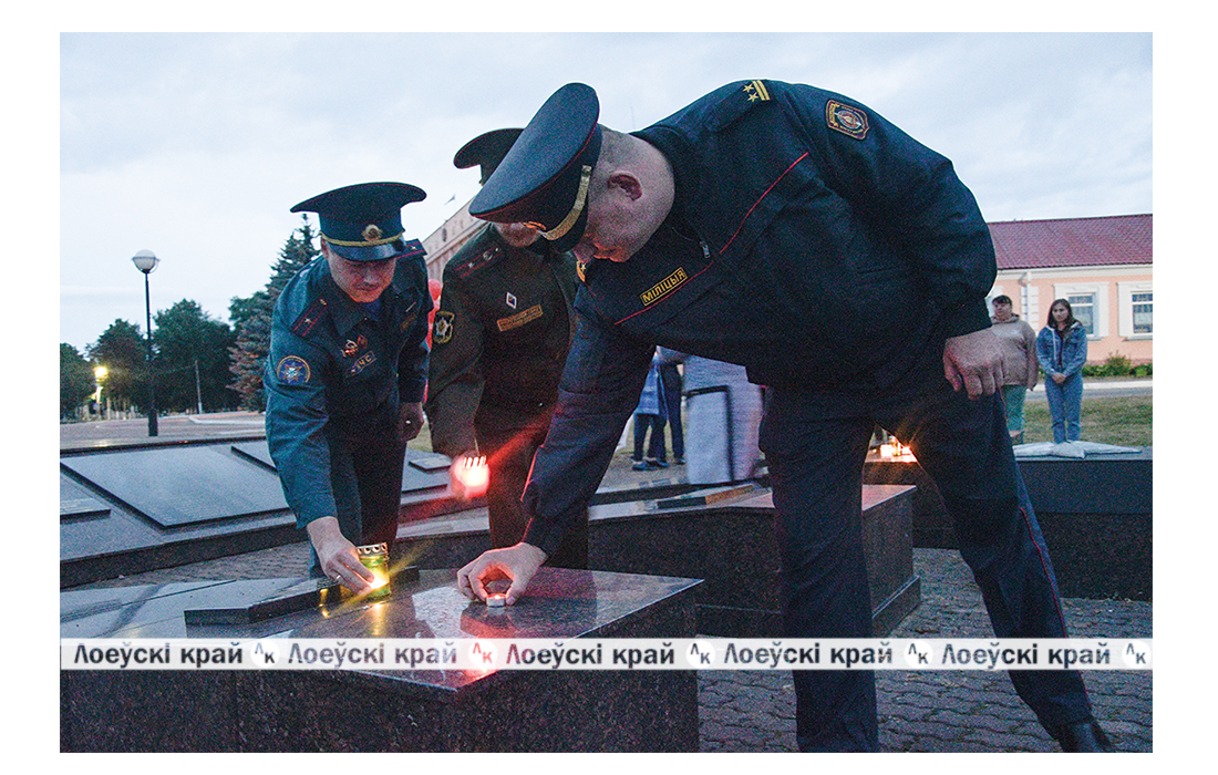 Ранним утром, ровно в 4 часа, как и в тот страшный день 41-го года, у братского захоронения собрались лоевчане, чтобы принять участие в акции «Свеча памяти «Никто не забыт. Ничто не забыто». Минутой молчания, тишиной, звенящей до боли и слез, собравшиеся почтили память погибших в годы войны, зажгли лампадки с огнем и выпустили в небо шары с голубями, символизирующими мирную жизнь.