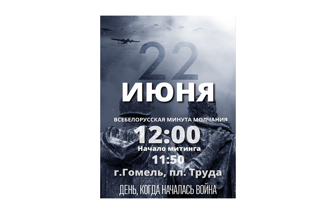 Поклонимся: 22 июня жители Гомельской области присоединятся к общереспубликанской минуте молчания