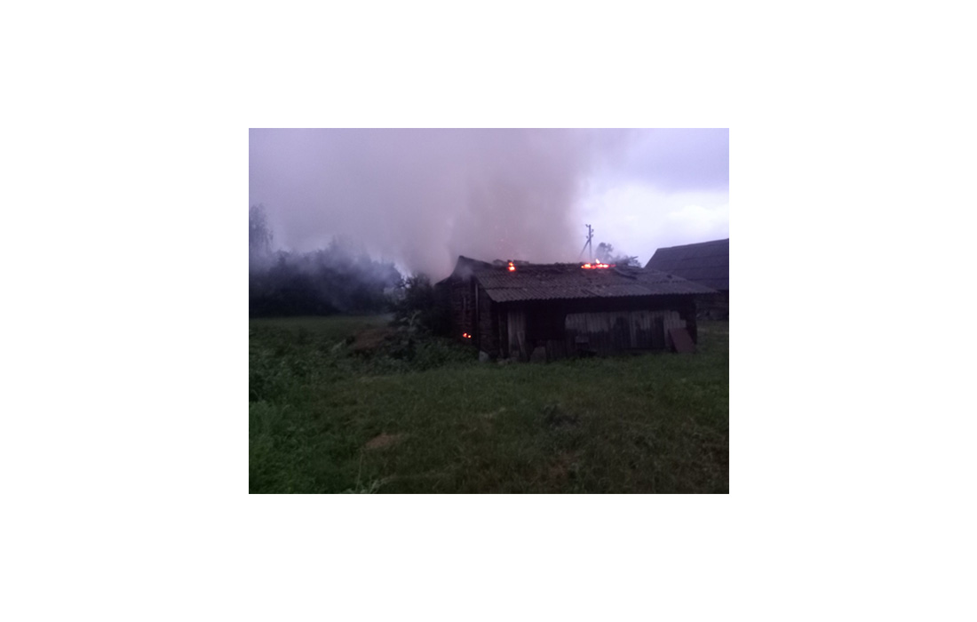 В 20-39 предположительно от удара молнии загорелся сарай в деревне Липов Калинковичского района. Огнем уничтожена кровля, повреждены стены и имущество в сарае.