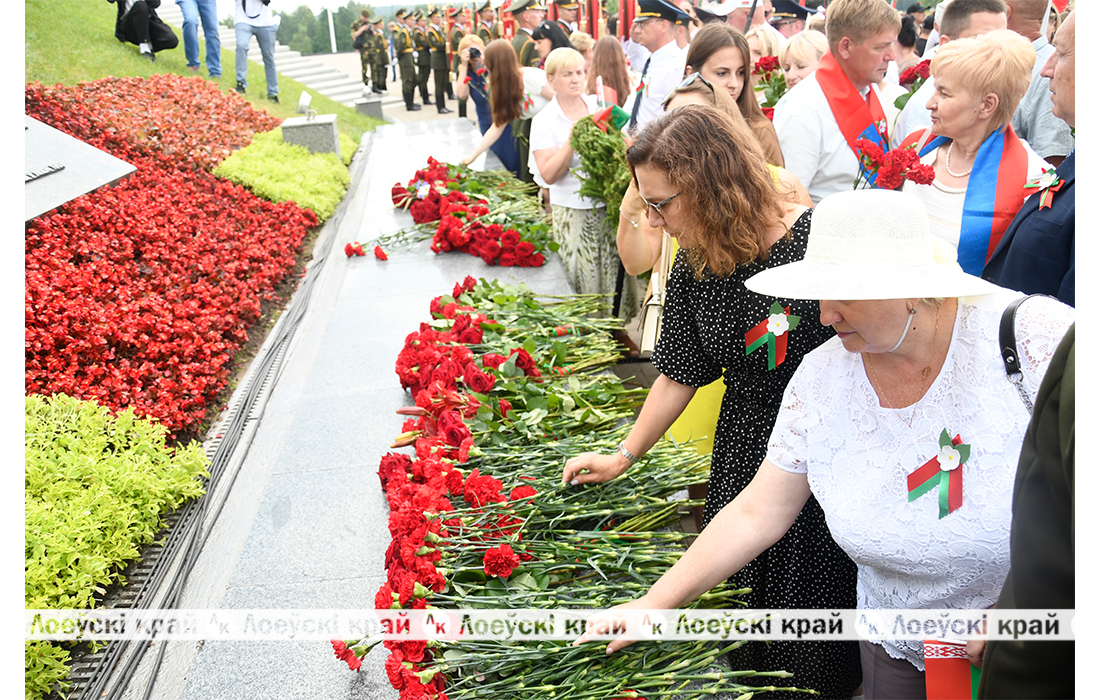 3 июля у подножия мемориального комплекса «Курган Славы» собрались почтить память погибших и возложить цветы представители 27 городов и населенных пунктов, удостоенных по указу Президента вымпелов «За мужество и стойкость в годы Великой Отечественной войны». В их числе и жители Лоевского района.