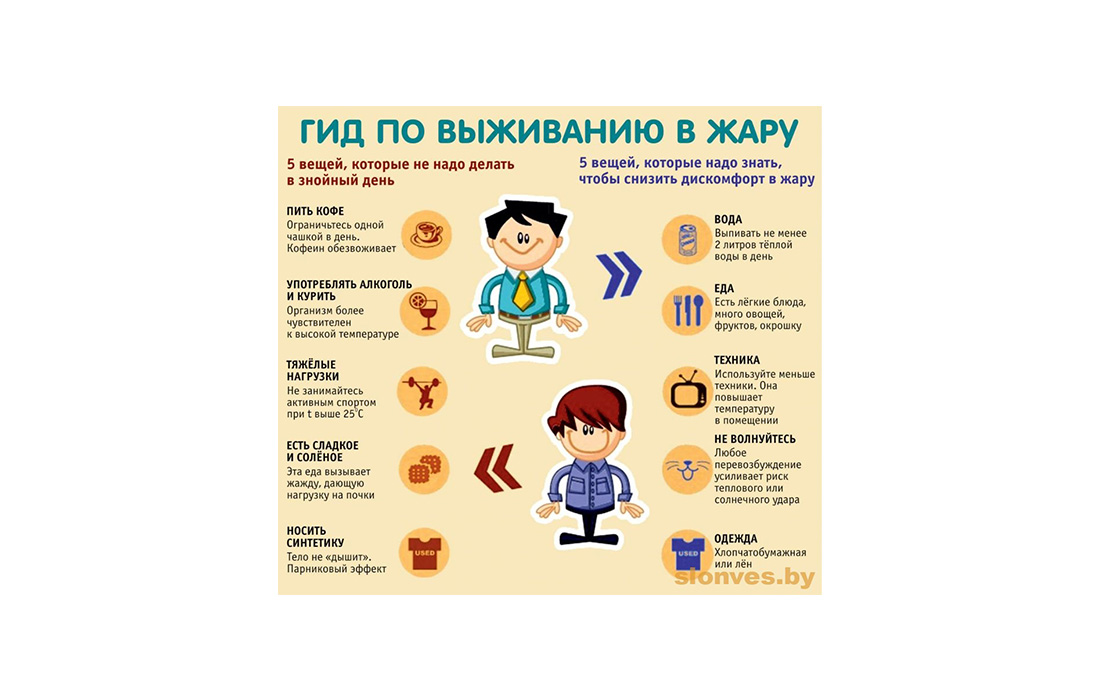 Небывало жаркая погода диктует свои правила поведения, пренебрегать которыми чревато для здоровья человека. Особенно плохо переносят эту температурную аномалию лица, страдающие хроническими заболеваниями, беременные