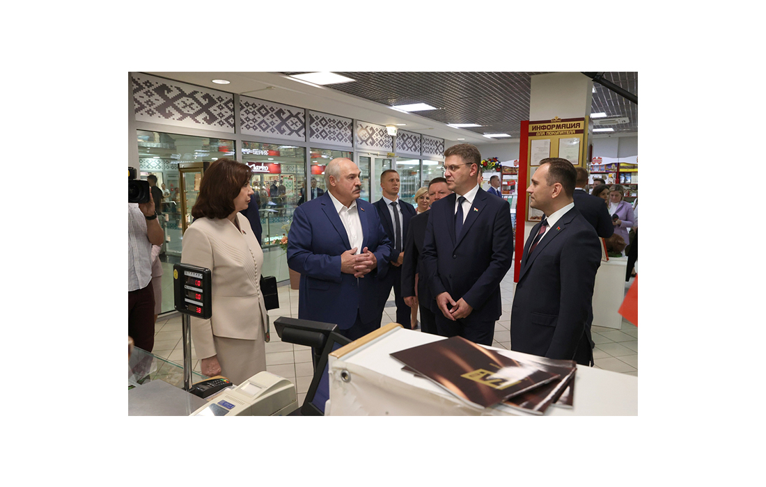 Александр Лукашенко посетил торговый центр «Столица». Главе государства доложили о перспективах развития центра. Президент побывал в торговых точках, ознакомился с ассортиментом белорусской продукции, представленной