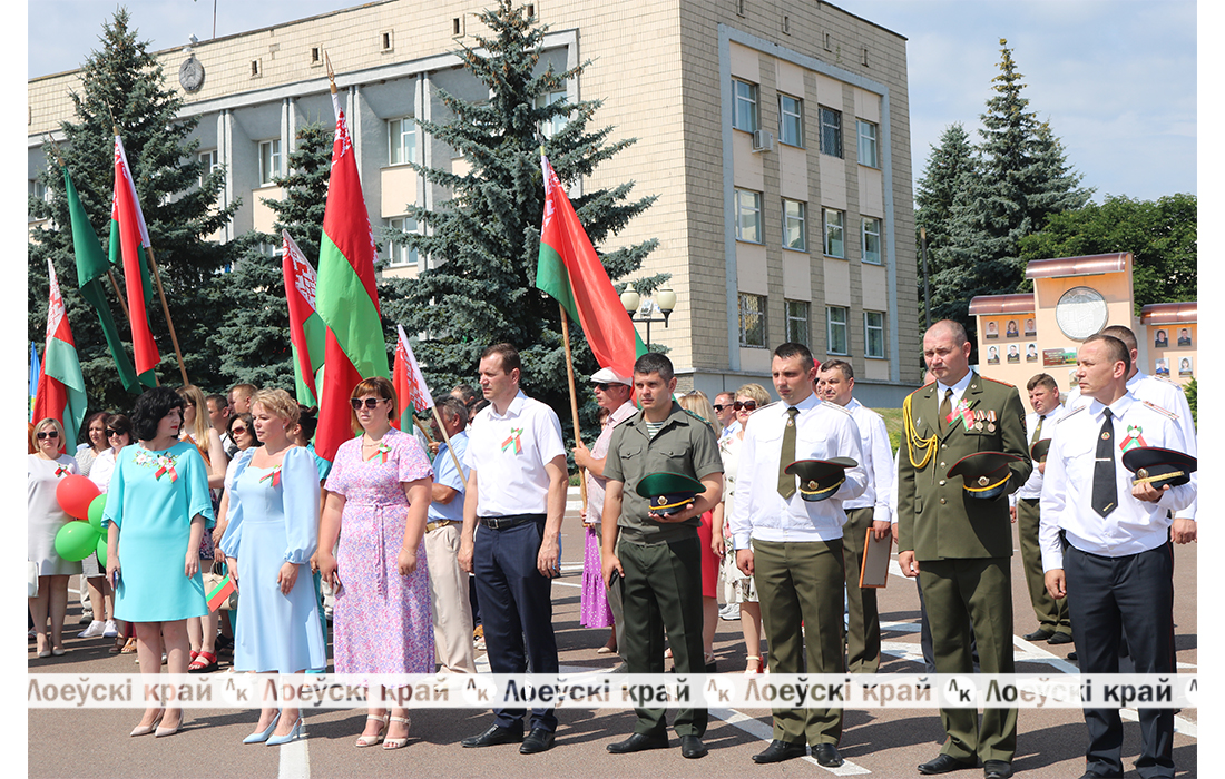 Главной локацией праздника стала центральная площадь горпосёлка. Музыкально-хореографическая композиция «Ты моя, Беларусь родная» дала старт торжественным мероприятиям. Со словами искренних поздравлений к лоевчанам обратилась глава района Вероника Байкова: «Этот праздник символизирует народное единство, которое помогло белорусам выдержать самый сильный удар судьбы, выжить как нация в годы Великой Отечественной войны и победить. Память, которая жива в наших сердцах, — это напоминание, признательность, то, что мы должны ценить и не потерять — детский беззаботный смех, улыбки родных, жизнь под мирным небом. Уроки войны белорусский народ усвоил четко: не допустить искажения славных и героических страниц нашей победы. Мы продолжим наш исторический путь, сделаем все, чтобы сохранить независимость родной земли. Пусть над нашей Родиной будет голубое чистое небо и сияющее солнце. Пусть любовь и созидательный труд станут залогом мирной жизни на земле».
