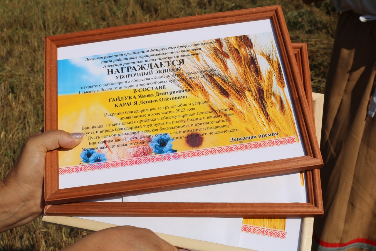 На Лоевщине продолжается чествование тысячников. Сегодня их поздравили глава района Вероника Байкова, председатель Гомельской областной профсоюзной организации Белорусского профессионального союза работников АПК Александр Навныко и др. «Хвала рукам, что пахнут хлебом» — оправданные временем слова, герои жатвы — славны делом, поклон им, мира и добра.
