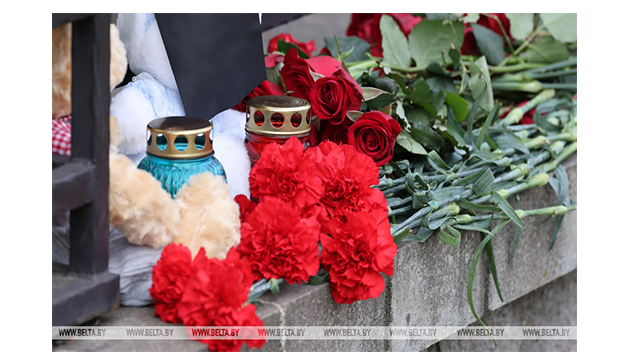 Белорусы несут цветы к посольству России в память о погибших в результате стрельбы в школе Ижевска. В Удмуртской Республике объявлен трехдневный траур.