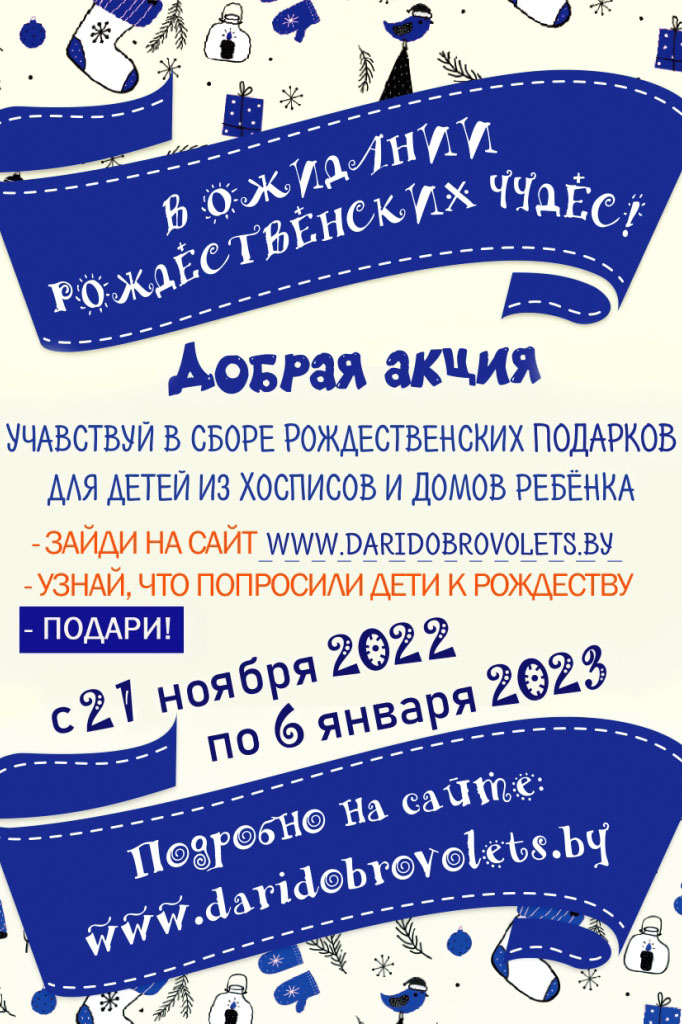 «На специально разработанном сайте www.daridobrovolets.by размещены имена болеющих деток, их возраст и то, что маленький человек хотел бы получить к Рождеству Христову, что нравится или будет полезно. Это может быть развивающая игрушка, мягкий плед, добрая книга или другой подарок. Любой желающий может забронировать на сайте подарок для определенного ребенка, купить эту вещь в магазине и в течение 5 дней привезти в один из пунктов приема подарков», — сообщили в БПЦ.