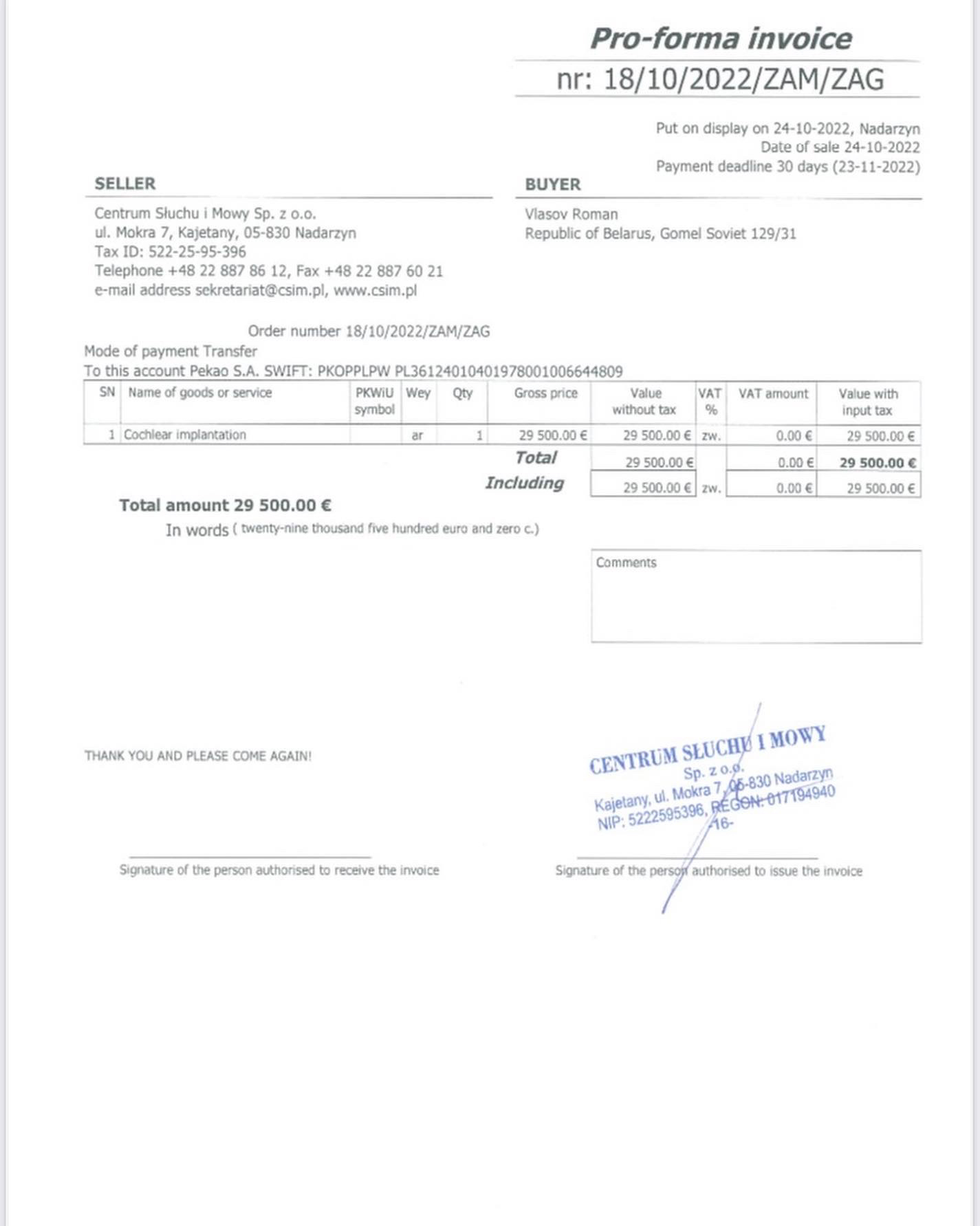 На лечение за пределами РБ стоимостью 29 500 евро.