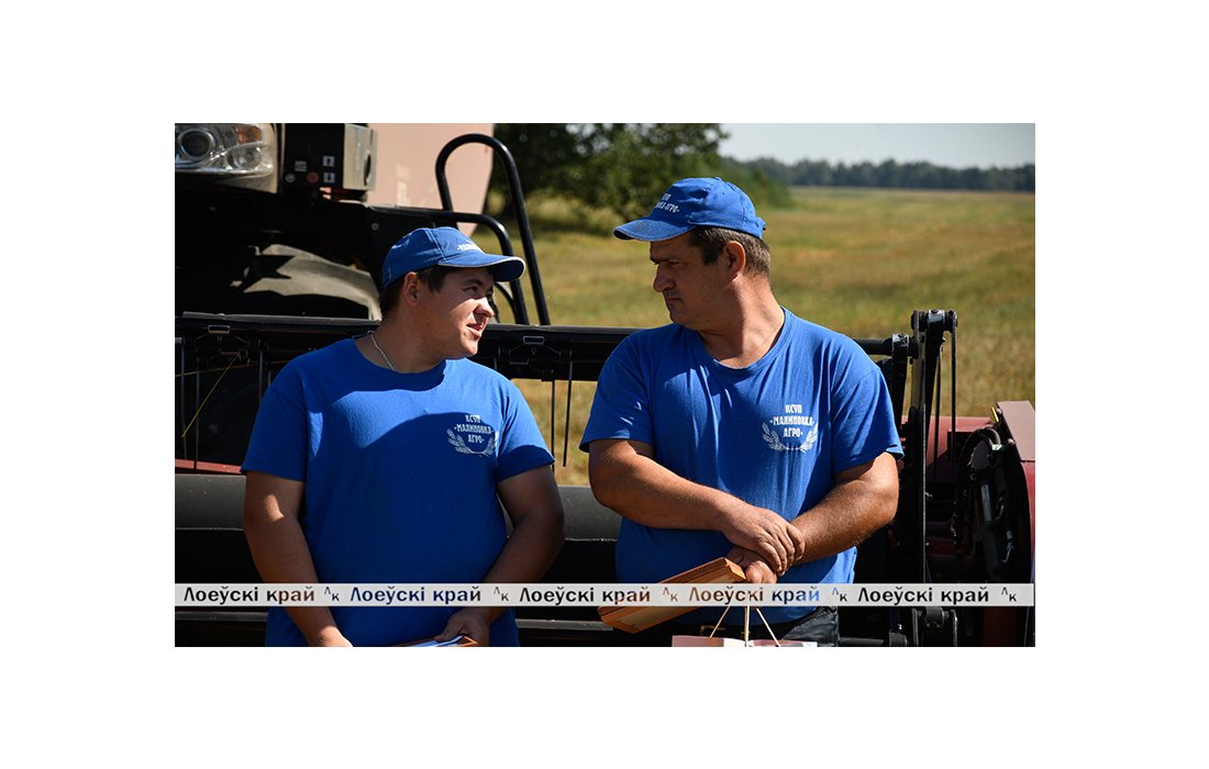 Яго памочнік, малады аграрый, прадстаўнік вядомай на Лоеўшчыне дынастыі, Андрэй Маскаленка (на здымку злева) толькі пасля намалочаных некалькіх тысяч тон збожжа па-сапраўднаму зразумеў: быць камбайнёрам цяжка — спякота, пыл, паломкі, якія трэба ліквідаваць хутка і самастойна. Але, нягледзячы на гэта, за некалькі гадоў працы мужчыны прывыклі да напружанага рытму. На жніве яны забываюць аб стомленасці, усе думкі толькі аб тым, як хутчэй убраць вырашчаны ўраджай.