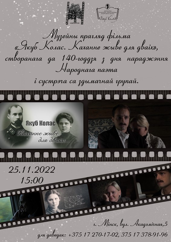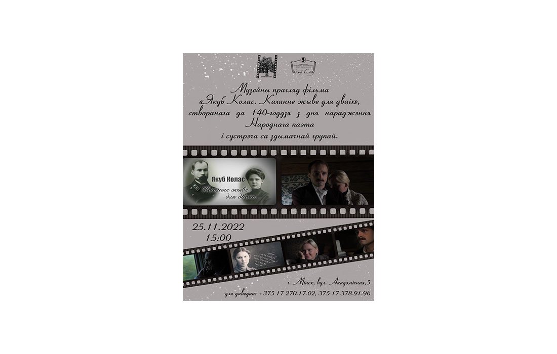 Картина снята к 140-летию со дня рождения классика белорусской литературы. В ходе музейного показа, который пройдет в Государственном литературно-мемориальном музее Якуба Коласа 25 ноября, запланирована встреча со съемочной группой.