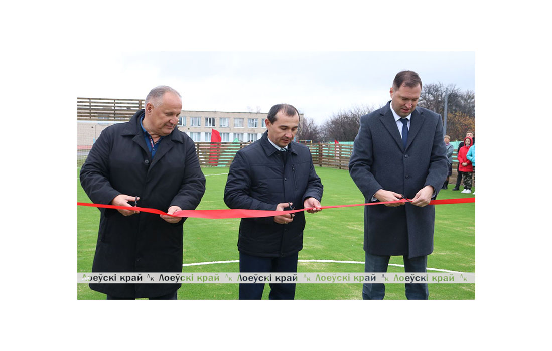 Совсем недавно футбольную площадку открыли и в нашем районе — на территории средней школы имени А.В. Козлова. Для Лоевщины такое событие — праздник, а потому его отметили торжественно и ярко. Новый спортивный объект стал настоящим подарком не только подрастающему поколению, но и всем приверженцам здорового образа жизни. Материальную поддержку при его возведении оказали спонсоры: Туровский молочный комбинат и ОАО «Гомельтранснефть Дружба». Лоевчане тоже не остались в стороне и приняли самое активное участие в подготовке площадки. Среди тех, кто оказал поддержку — КМУП «Лоевское ПМС», отдел жилищно-коммунального хозяйства, архитектуры и строительства райисполкома, Лоевский лесхоз, КЖУП «Лоевский райжилкомхоз», ПУП «Лоевский КСМ» ОАО «Полесьестрой», центр по обеспечению деятельности бюджетных организаций Лоевского района, ДРСУ-114, ДЭУ-45, педагоги и работники отдела образования. На аппаратном совещании в райисполкоме глава района Олег Таргонский поблагодарил предприятия и организации Лоевщины за оказанную помощь и вручил благодарственные письма.