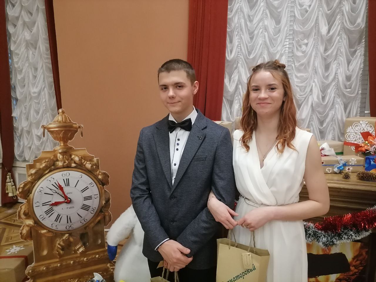 В числе тех, кто кружил на паркете дворца под музыкальное сопровождение камерного оркестра Гомельской областной филармонии, учащиеся средней школы им. А.В. Козлова Анастасия Скачинская и Артем Синило (на снимке). На балу они неслучайные гости. Анастасия — активная участница волонтерского отряда «Милосердие», победительница конкурса юных талантов «Зорная ростань» в номинации «хореография», ее часто можно увидеть на сцене различных праздничных мероприятий. Артем является участником I и II этапов олимпиад по учебным предметам, проявляет себя в спортивных соревнованиях, таких как баскетбол и волейбол.