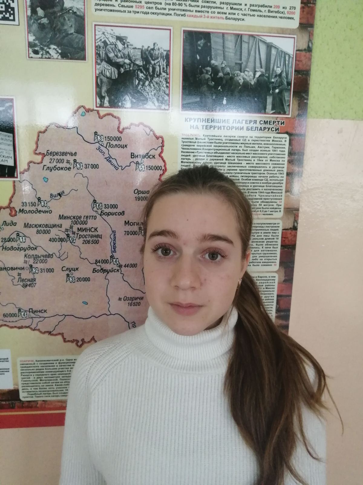 — Всё, что мы услышали и увидели сегодня, позволило нам сердцем соприкоснуться с трагедией, пережитой нашими предшественниками. Эхо войны прокатилось по каждой белорусской семье. Я узнала много нового, чего пока нет в книгах и интернете. В основном мои сверстники, и я в том числе, черпают информацию из Всемирной паутины, а там ее подают в разном ключе — и в искаженном виде тоже.