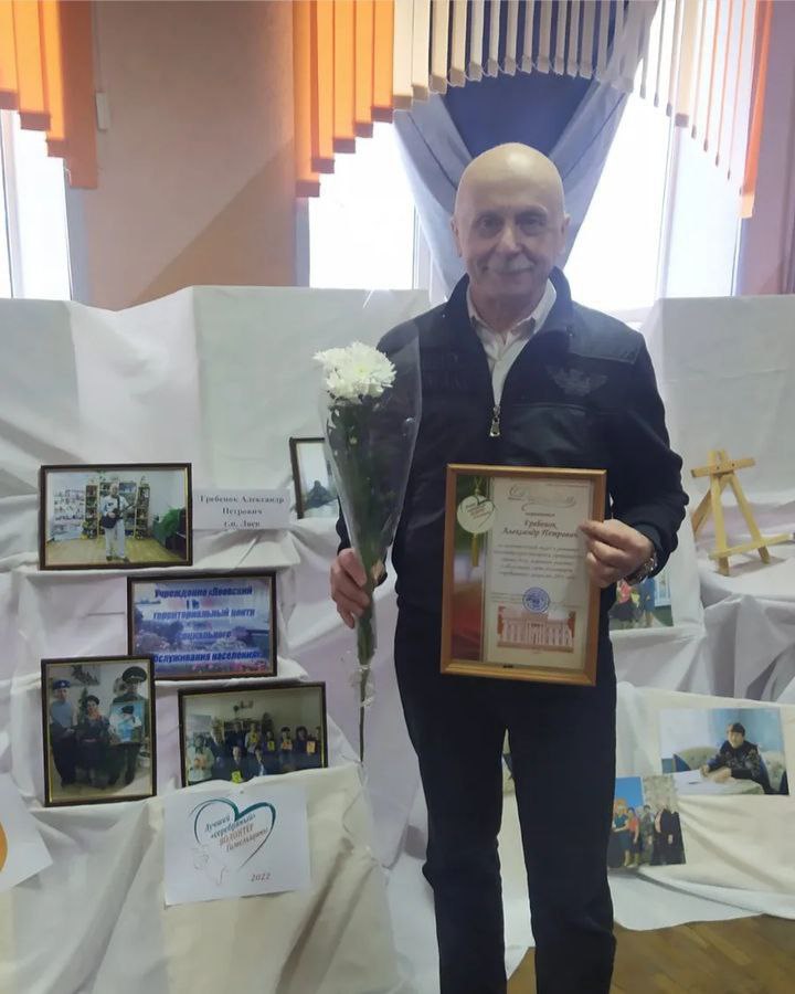 Учреждением «Лоевский территориальный центр социального обслуживания населения» для участия в конкурсе был заявлен Гребенок Александр Петрович, «серебряный» волонтер Лоевского района. Пенсионер уже более десяти лет находится на заслуженном отдыхе, сохранил активную жизненную позицию и готов бескорыстно помогать тем, кто нуждается в поддержке: пожилым гражданам, инвалидам, а также всем нуждающимся. Работа его организована по направлению «организация досуга»: совместно со специалистами центра организует праздничные мероприятия, благотворительные концерты, проводимые в территориальном центре, в больнице сестринского ухода д. Бывальки.