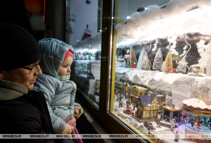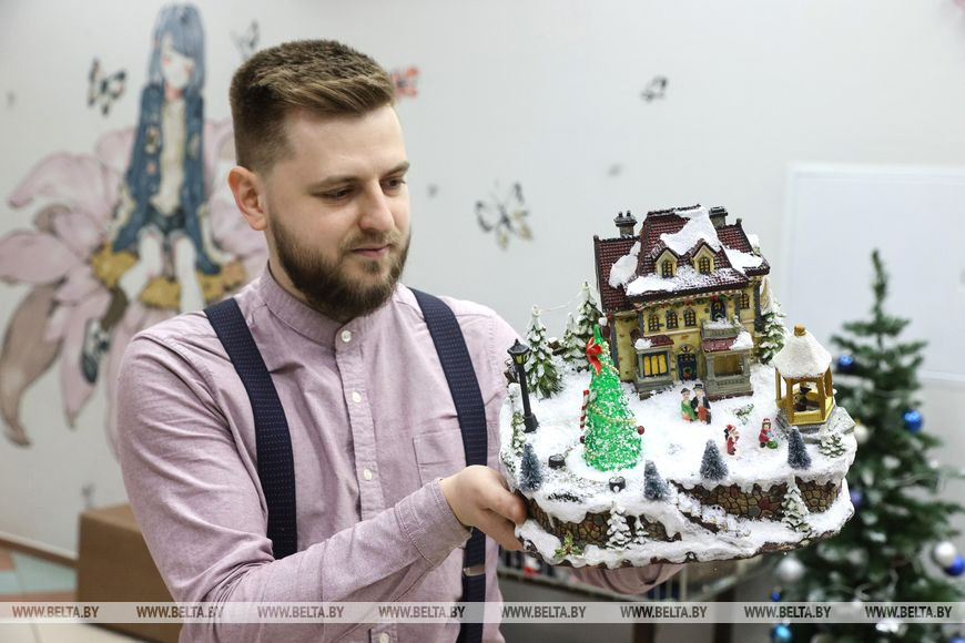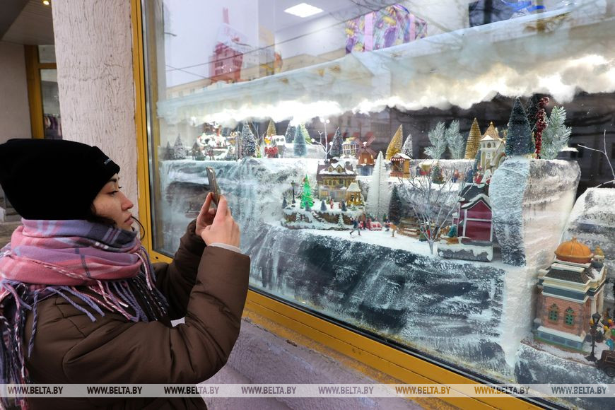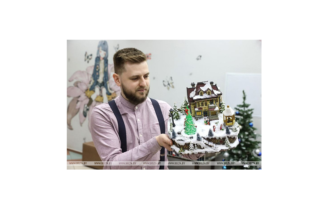 Окна домов, школ, фасады зданий в предновогоднее время превращаются в произведения декоративного искусства, заставляя прохожих всматриваться в причудливые узоры и арт-объекты, любоваться игрой света и цвета мигающих гирлянд. В этом году магазин на одной из центральных улиц Витебска стал точкой притяжения горожан и гостей областного центра. Невольные зрители всех возрастов останавливаются возле спрятанного за стеклом зимнего миниатюрного городка, выполненного в новогоднем стиле и передающего душевное тепло его создателя — Кирилла Янулевича. Для него изготовление такой «игрушки» давнее хобби, а представшую перед витебчанами композицию он по крупицам собирал в течение пяти лет. Мастер-самоучка рассказал корреспонденту БЕЛТА, как от простой декоративной фигурки зародилась идея создания зимнего города, которая вылилась в шестиметровую композицию, где нашлось место и воспоминаниям из детства.