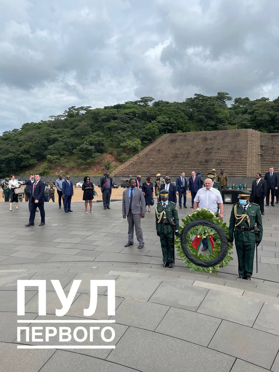 Главу государства встретил министр иностранных дел и международной торговли Зимбабве Фредерик Шава. Александр Лукашенко возложил венок к Могиле Неизвестного Солдата. Президенту рассказали об истории создания комплекса.