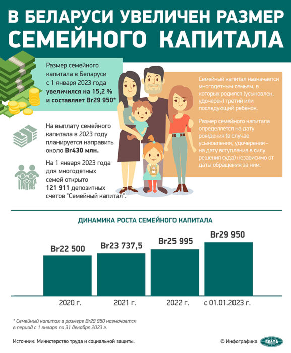На выплату семейного капитала в 2023 году планируется направить около Br430 млн.