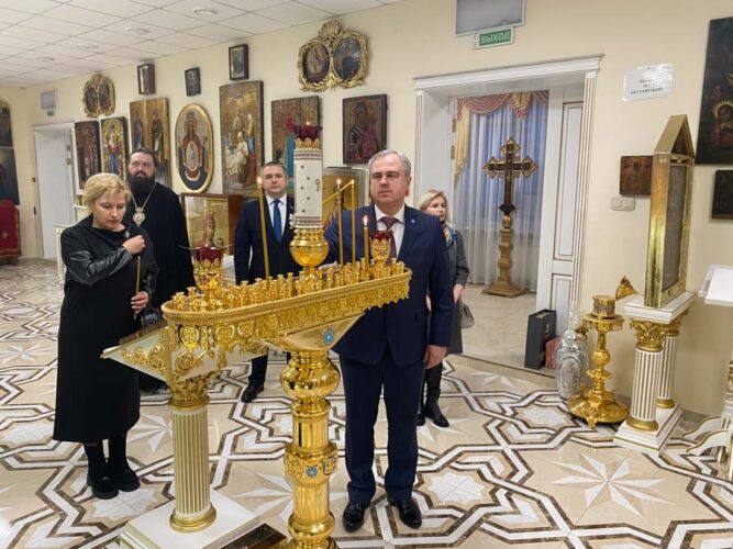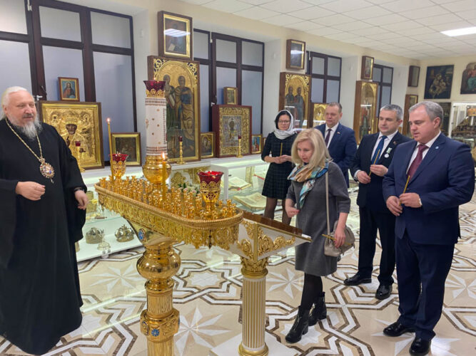 Экскурсию по домовому храму-музею провел заведующий канцелярией. Он представил гостям экспонаты музея, рассказал о хранящихся реликвиях и о дальнейших планах работы музея с учреждениями образованиями.