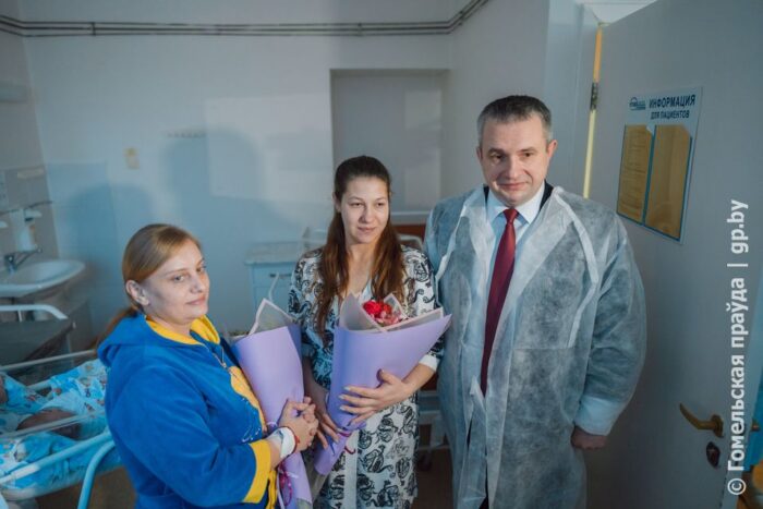 В областном роддоме цветы и подарки от председателя облисполкома принимали три многодетные мамы.