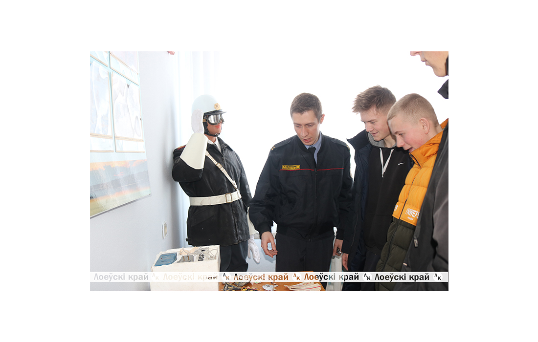 Затем их ознакомили с музейным уголком, где по крупицам собраны элементы истории образования отдела. Здесь представлены архивные фотографии. Своё отражение в цветных и чёрно-белых фотографиях и документах, выцветших от времени, нашли как будни, так и праздники правоохранителей. Отдельное место на экспозиции занимают служебные удостоверения сотрудников, Почётные грамоты и благодарности за труд, а также различные бытовые предметы, бывшие в использовании у милиционеров Лоевщины в прошлом.