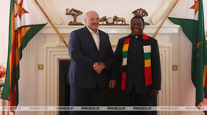 Президенты Беларуси и Зимбабве Александр Лукашенко и Эммерсон Мнангагва проводят переговоры в Государственном Доме (Стейт-Хаус) — официальной резиденции зимбабвийского лидера, передает корреспондент БЕЛТА.