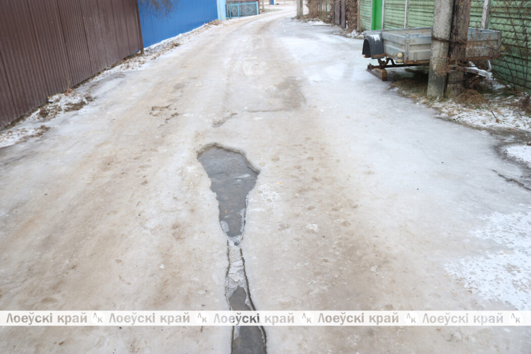 Последней каплей стала образовавшаяся ледяная корка при въезде на улицу со стороны административного здания ОАО «Лоевский Агротехсервис». В некоторых местах ее толщина достигает около пятнадцати сантиметров. По словам жителей, каток на проезжей части появился еще в конце декабря прошлого года. До этого здесь просто текла вода. Даже боюсь представить, сколько за это время ее утекло. Минусовая температура тоже сделала свое дело. Образовавшийся гололед доставляет большие неудобства пешеходам. К слову, улица оживленная, на ней находится детско-юношеская спортивная школа, куда спешат мальчишки и девчонки на тренировки. А если вся эта наледь припорошится снежком, то и до травм недалеко. Обидно только, что люди с этой проблемой обращались в райжилкомхоз, но по неведомым нам причинам его работники почему-то не принимают никаких мер, оттуда ни ответа ни привета.