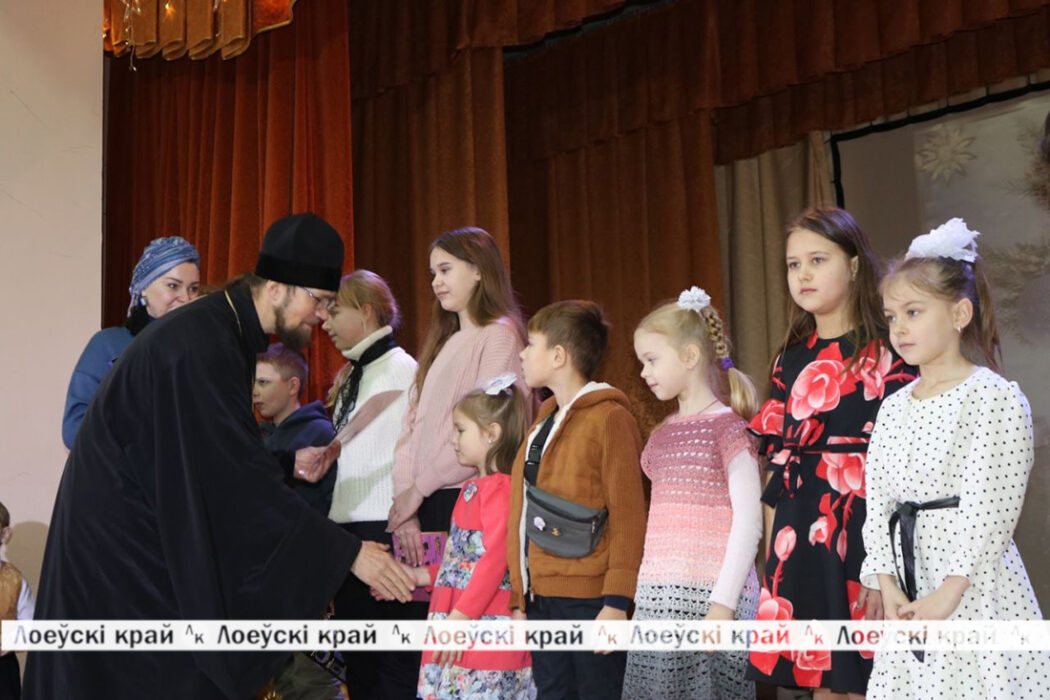 В канун Рождества Христова в городском центре культуры было многолюдно. На театрализованное представление, которое ежегодно организует Лоевское благочиние совместно с отделом образования, спорта и туризма райисполкома, собрались воспитанники детского дома семейного типа, социально-педагогического центра, детского сада №1, ЦКРОиР, воскресной школы, а также подопечные ТЦСОН.