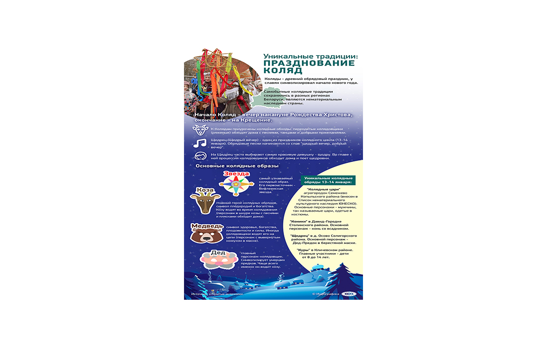 Самобытные колядные традиции сохранились в разных регионах Беларуси, являются нематериальным наследием страны.